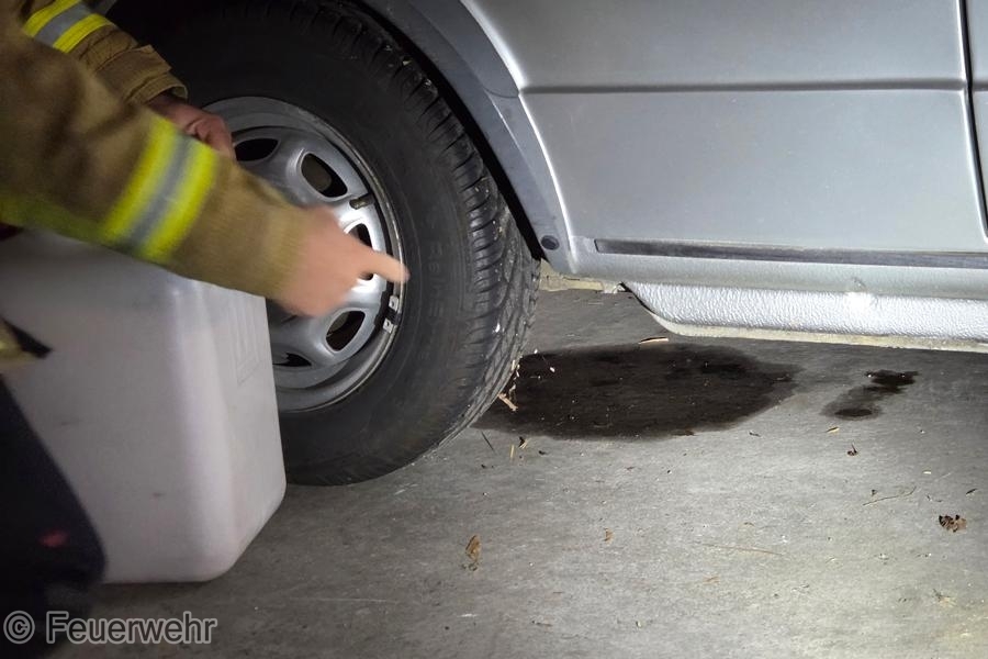 Anwohner meldeten einen starken Benzingeruch in einer Tiefgarage. Aus einem abgestellten Fahrzeug lief Kraftstoff aus. Mit Bindemittel wurde das Benzin aufgenommen und die Einsatzstelle im Anschluss an die Polizei übergeben.