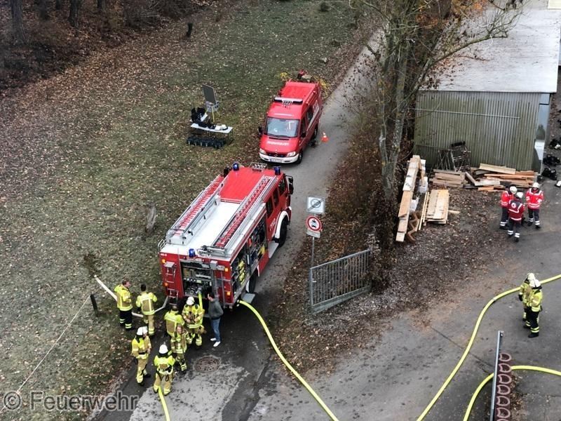 Ein Sachschaden von etwa 50.000 Euro ist die Folge eines Wohnungsbrandes, der sich am Mittwoch gegen 08:00 Uhr im Münchinger Weg in Schwieberdingen ereignete. Aufgrund der starken Rauchentwicklung wurde eine Anwohnerin auf den Brand aufmerksam und alarmierte die Feuerwehr. In der Folge rückten die Feuerwehren Schwieberdingen, Markgröningen und Hemmingen mit insgesamt 66 Einsatzkräften und elf Fahrzeugen zum Brandort aus und löschten das Feuer. Der Brand befand sich in einer Gewerbehalle mit Wohnkomplex. In dem zweistöckigen Gebäude brach im Obergeschoss aus bislang ungeklärter Ursache in der Wohnküche der Wohnung ein Feuer aus. Zwei Männer, die sich beim Ausbruch des Brandes in der Wohnung aufhielten, erlitten eine Rauchgasvergiftung und wurden vom Rettungsdienst in ein Krankenhaus gebracht. Bis auf weiteres ist die Wohnung nicht bewohnbar. Die Ermittlungen zur Brandursache dauern an.