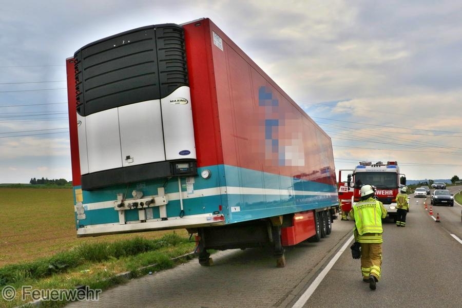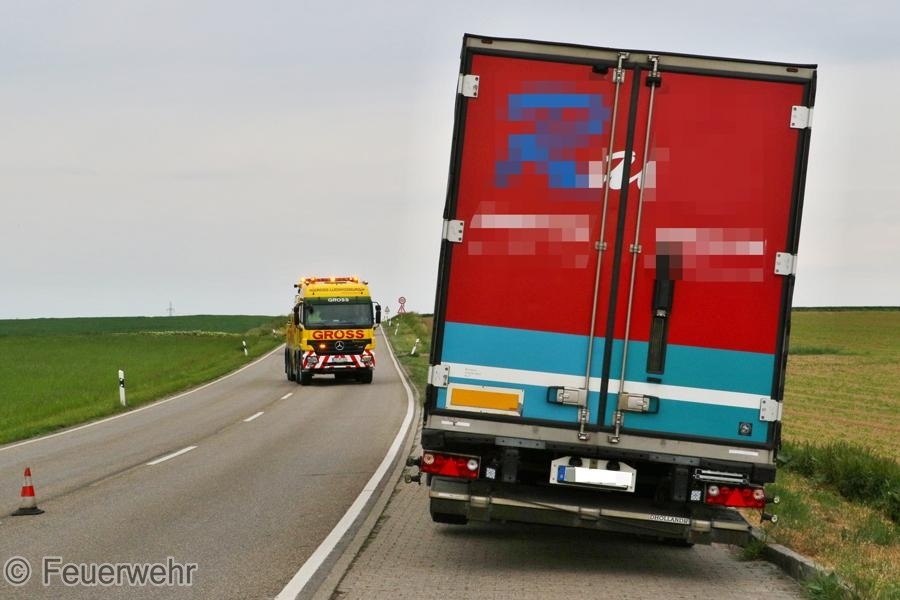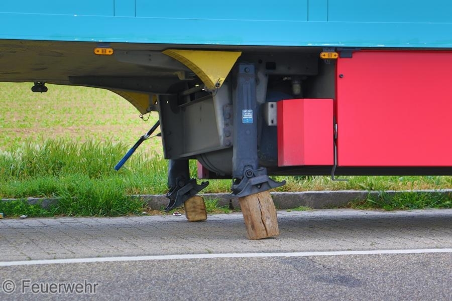 Die Integrierte Leitstelle Ludwigsburg wurde vom Führungs- und Lagezentrum (FLZ) der Polizei über einen LKW-Auflieger, welcher umzustürzen drohte informiert. Beim Eintreffen der Feuerwehr wurde festgestellt, dass es sich um einen abgestellten Auflieger in einer Parkbucht handelte. Eine der beiden Stützen hatte sich gesenkt, sodass der Anhänger sich auf dem abschüssigen Parkplatz zur Seite neigte. Da für die Verkehrsteilnehmer auf der Straße keine Gefahr bestand wurde nach Rücksprache durch die Polizei ein Abschleppunternehmen mit der Sicherung beauftragt. Die Feuerwehr konnte ohne weitere Tätigkeit einrücken.