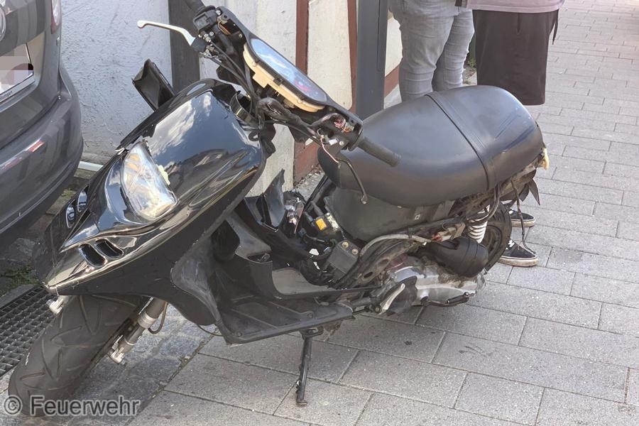 Nach einem Verkehrsunfall trat eine kleine Menge Betriebsstoffe aus einem Motorroller aus. Die Feuerwehr nahm diese mit Bindemittel auf und stellte Warnschilder. Die Einsatzstelle wurde an die Polizei übergeben.