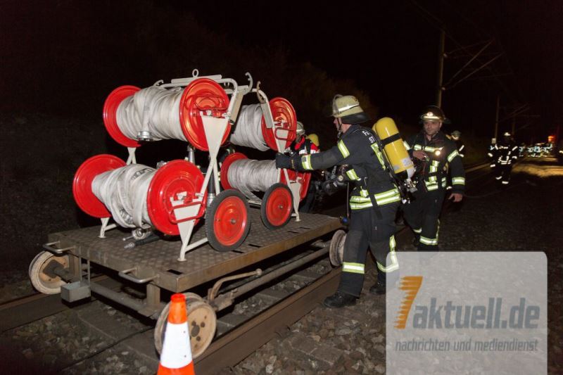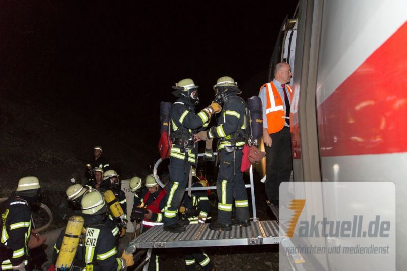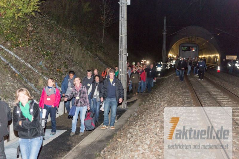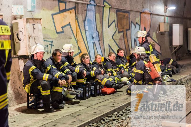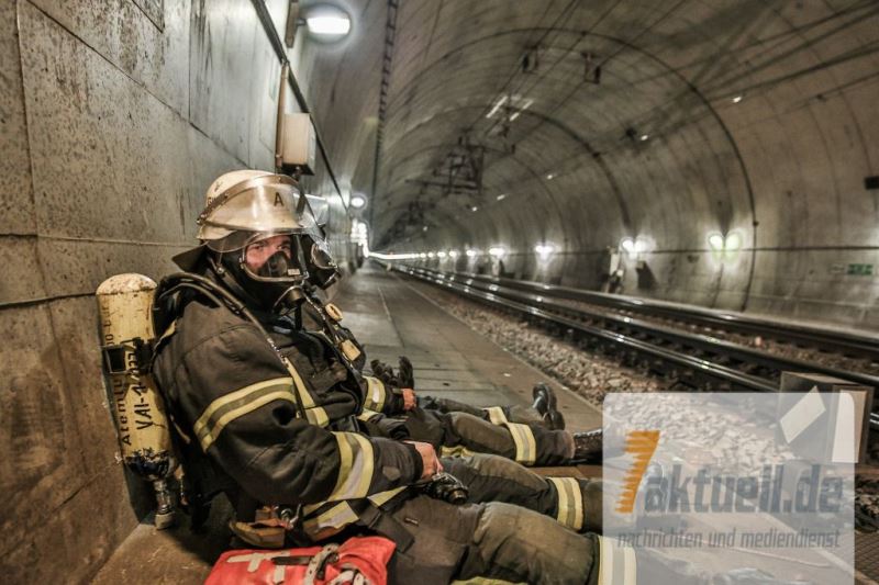 Dabei galt es, rund 160 Betroffene und Verletzte aus dem Zug zu retten. Gleichzeitig wurde eine Löschwasserversorgung von der rund 2500 Meter entfernten Enz an die Einsatzstelle verlegt. Eine besonders große Herausforderung stellte dabei die exponierte Lage der beiden Tunnelportale dar. Diese sind nur über enge Feldwege anzufahren. Neben den eigentlichen Feuerwehr- und Rettungsaufgaben mussten auch die Einheiten der Bundes- und Landespolizei umfangreiche Verkehrsregelungs- und Ordnungsmaßnahmen umsetzen. So waren am Ende nahezu 600 Einsatzkräfte im Einsatz.