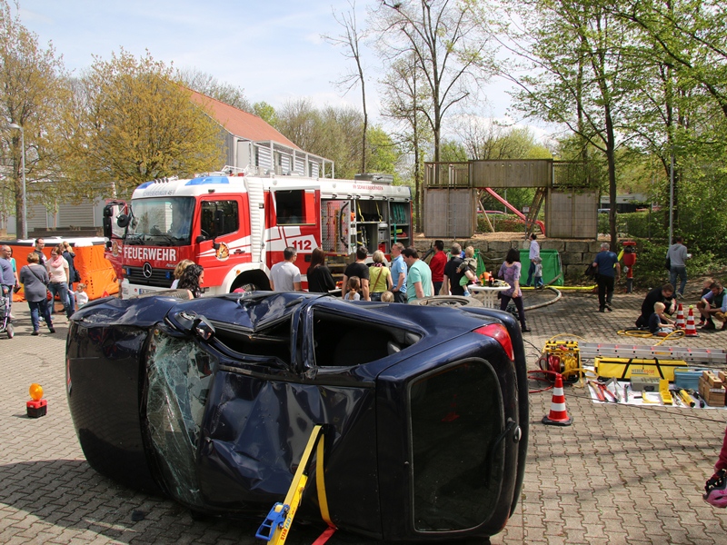 "Feuerwehr zum Mitmachen und Anfassen"! Sonntags wurde im Übungshof ein Löschgruppenfahrzeug vorgestellt sowie Stationen aufgebaut, welche den Bürgerinnen und Bürgern das Thema Feuerwehr näher brachten. Eine Station war z. B. der Umgang mit der hydraulischen Rettungsschere. Kinderfahrten und zwei Übungen der Jugendfeuerwehr standen ebenfalls auf dem Programm.