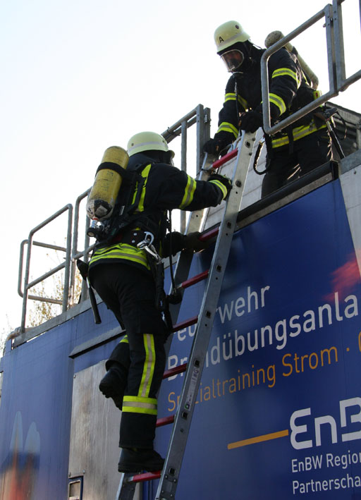 Über die komplette Zeit des Tag der offenen Tür war auch der Brandübungscontainer der EnBW im Feuerwehrübungshof. Den Gästen konnte so eindrucksvoll gezeigt werden, unter welchen Strapazen ein Innenangriff durchgeführt werden muss.
