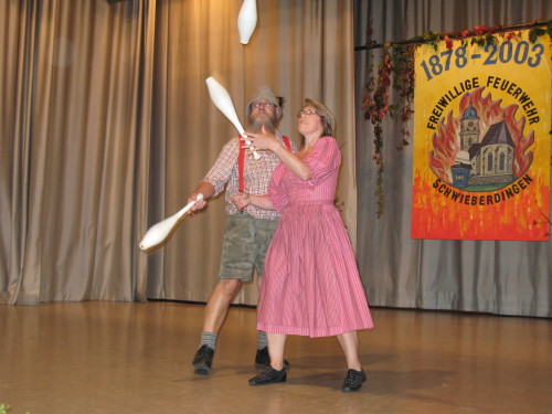 Jutta Lindenmann und Eberhard Nitsche beeindruckten das Publikum mit ihrer Jonglage. Die gelungene Tanzvorführung von Mitgliedern der Aktiven Wehr (Michael Geier, Benjamin Dillmann, Thomas Womes, Annette Nitsche, Dieter Ohsam, Sarah Dillmann, Michael Nitsche und Tobias Walker) begeisterte das Publikum, so dass umgehend eine Zugabe gefordert wurde.