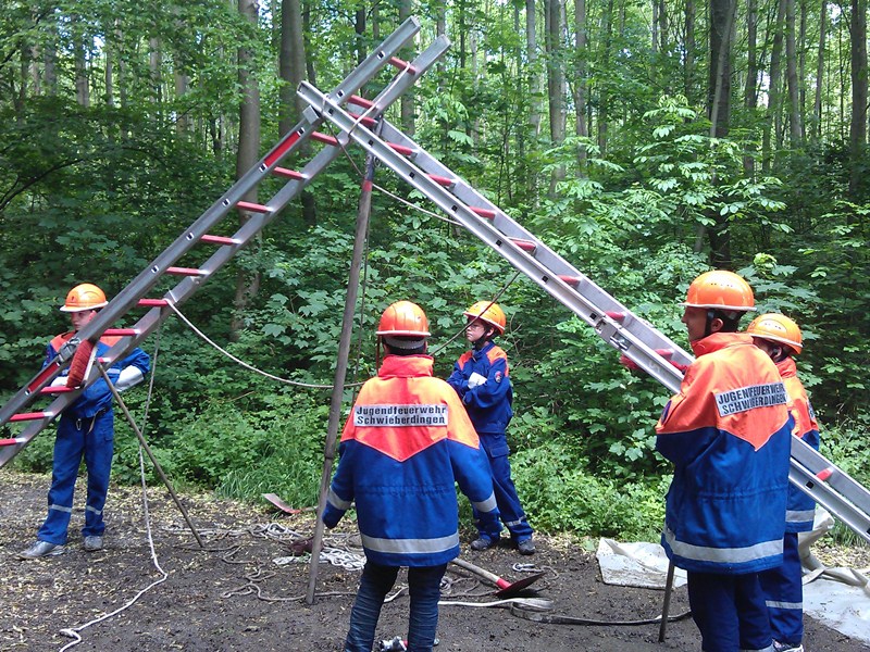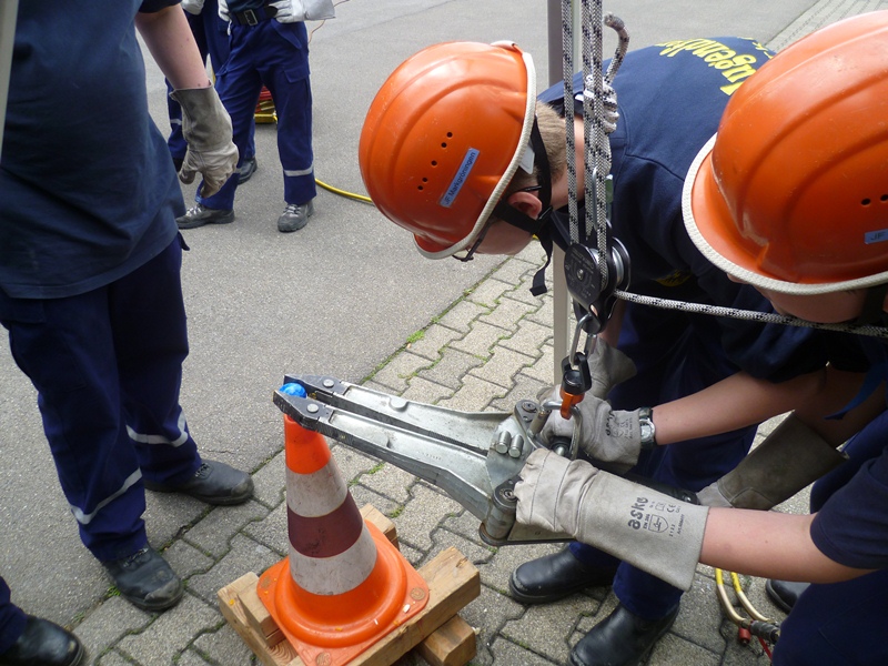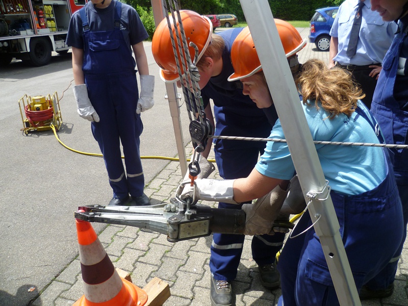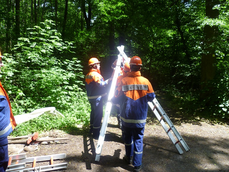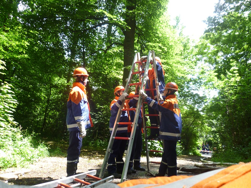 Als wir dann weiter gingen, kam eine sehr schwere Station bei der wir mit zugemalten Taucherbrille vor den Augen auf dem Rücken unter einem Holzbalken Schrauben abschrauben mussten. Nach den insgesamt 10 Stationen mit allerlei Feuerwehrtechnischen Dingen sowie einer kurzfristig eingeschobenen Station gingen wir noch zur Siegerehrung. Wir landeten tatsächlich auch in der Top Ten. Am Ende belegten wir im B-Pokal den Platz 5, 9 und 10. Im A-Pokal wurde die gemischte Gruppe aus Schwieberdingen und Markgröningen auf den ersten Platz! Danach wurden wir zum sehr, sehr müde Gerätehaus gefahren.