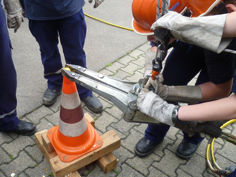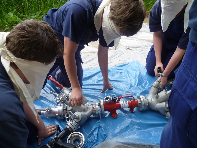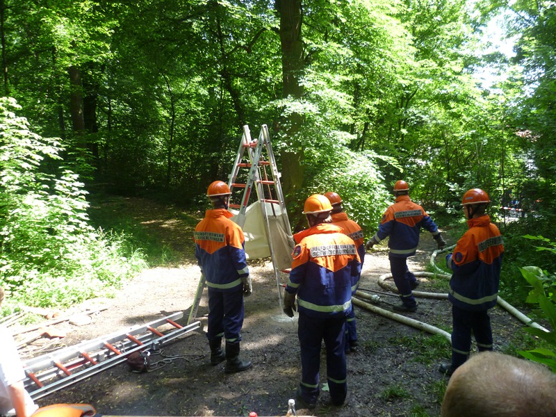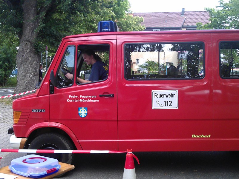 Danach ging es nach Korntal, wo wir erst einmal warteten. Später folgte eine Begrüßung, sowie die Übergabe des neuen MTW an die Abteilung Korntal. Nun wurden an die Gruppen Stadtpläne verteilt, sowie die Reihenfolge der Stationen festgelegt. Da wir zu viele waren, wurden wir Schwieberdinger in Kleingruppen eingeteilt und nach einer kleinen Stärkung ging es los: Nach 5 Stationen in Korntal, unter anderem eine Dusche aus verschiedensten Feuerwehrgeräten innerhalb von 10 Minuten bauen, liefen wir über das Feld nach Münchingen.