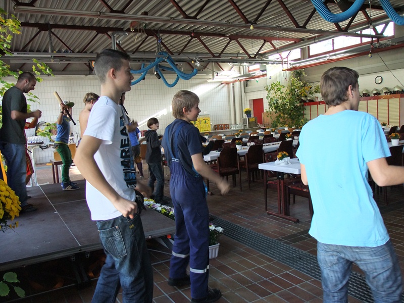 Kameradschaftsabend mit der JugendfeuerwehrAuch dieses Jahr waren wir wieder beim Kameradschaftsabend dabei. Anders als in den letzten Jahren haben wir zusammen mit unseren Jugendleitern wieder einen Programmpunkt auf die Beine gestellt. Zu dem Lied "Call Me Maybe" performten wir einen Tanz mit einer eigenen Choreographie. Dabei trugen die Tänzer verschiedene Outfits von Aktionen und Sportevents, die wir in diesem Jahr schon alles gemacht haben. Unsere „eigene Band“ unterstütze uns dabei mit Speedminton-Schlägern als Gitarren und Kochlöffeln als Mikrofone. Im gesamten war es wieder ein sehr amüsanter Samstagabend.