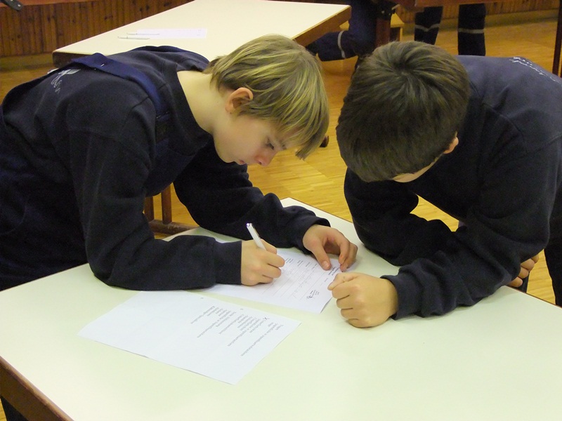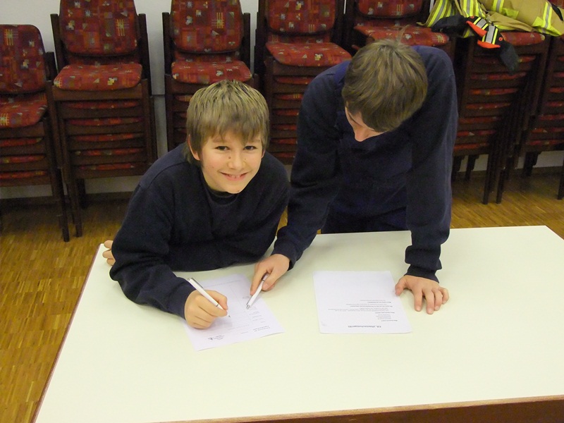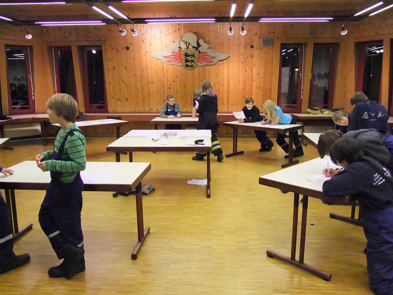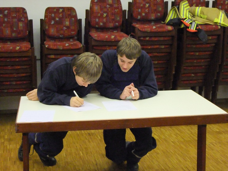 Zu zweit mussten wir dann die Fragen bearbeiten. Danach bekamen wir den nächsten Zettel mit einem neuen Thema zum Ausarbeiten. Am Ende gab es für alle Gummibärchen im Jugend-Feuerwehrraum. Es war wieder mal ein schöner, lustiger Abend.