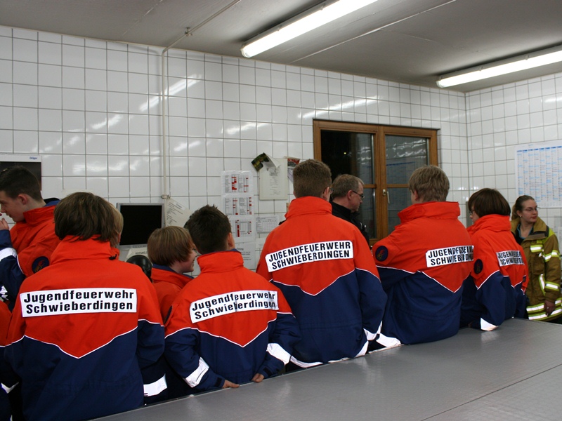 Als letztes gab es das Highlight, die Leitstellenbesichtigung. Dort angekommen mussten wir sehr leise sein, da dort die Notrufe entgegengenommen werden. In der Leitstelle wurde uns erklärt wie dort gearbeitet wird und was alles notwendig ist um schnell auf Notrufe zu reagieren. Nach einem gemeinsamen Gruppenbild verabschiedeten wir uns und fuhren gemeinsam zurück nach Schwieberdingen.