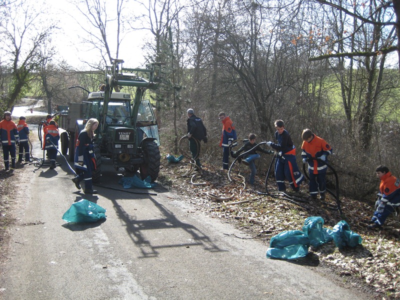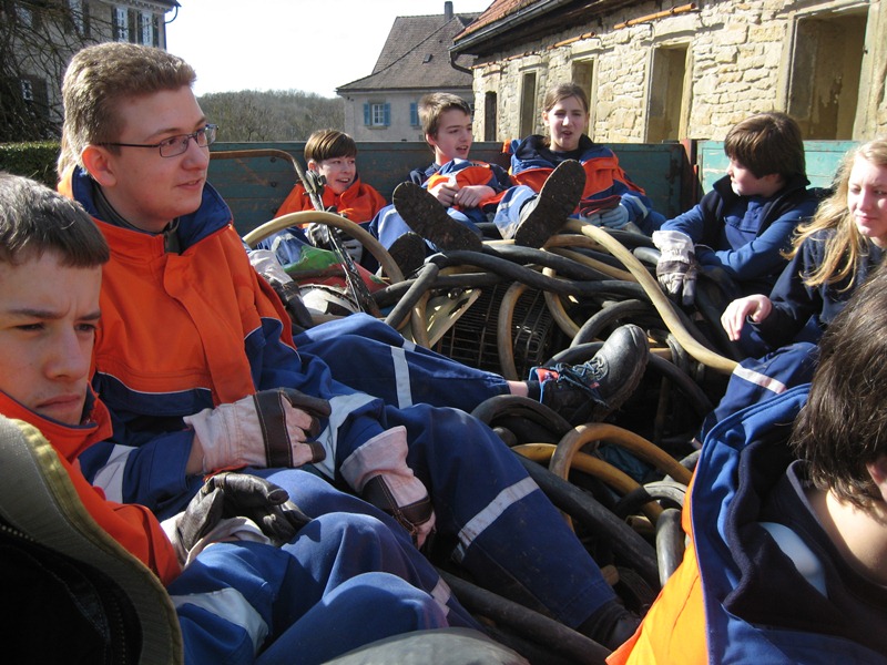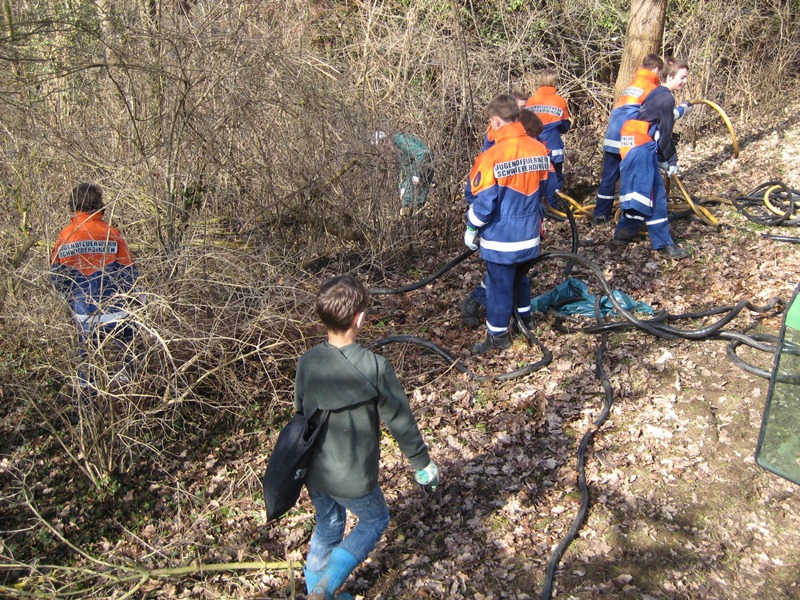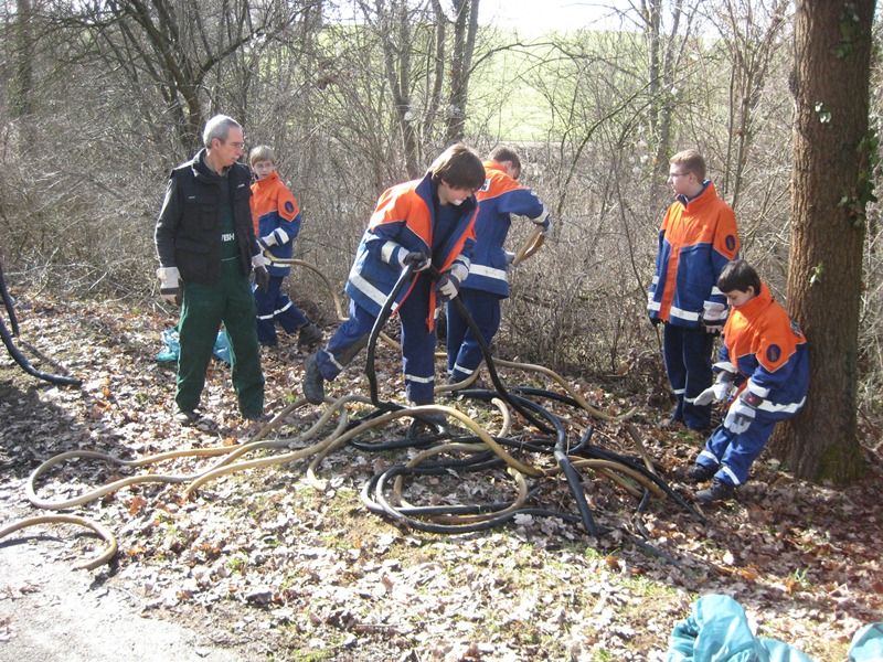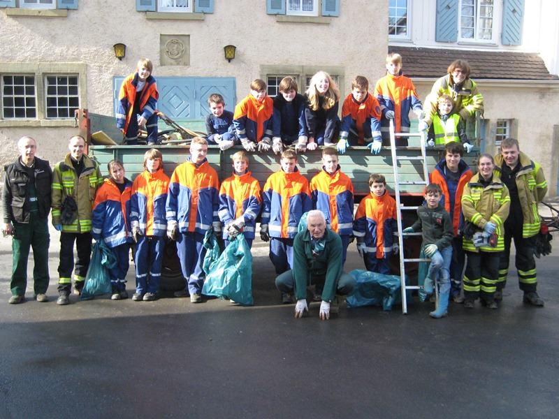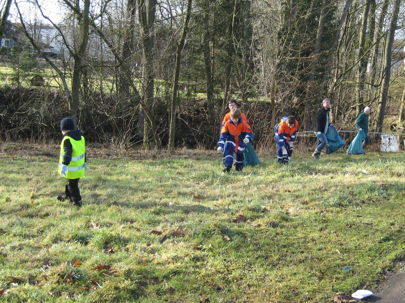 Am 09.03. traffen wir uns (mehr oder weniger) wach um 8:30 am Gerätehaus, um auch kurz darauf gleich zum Treffpunkt für alle zur Turn- und Festhalle zu gehen. Nach einer kurzen Ansprache und einem Gruppenfoto gingen wir gleich los, die eine Grupp am Hallenbad vorbei, am Glemsufer entlang und dann zur Schule, die andere in Richtung Skatepark. Was uns dabei positiv auffiel war, das dort deutlich weniger Müll lag als im letzten Jahr.