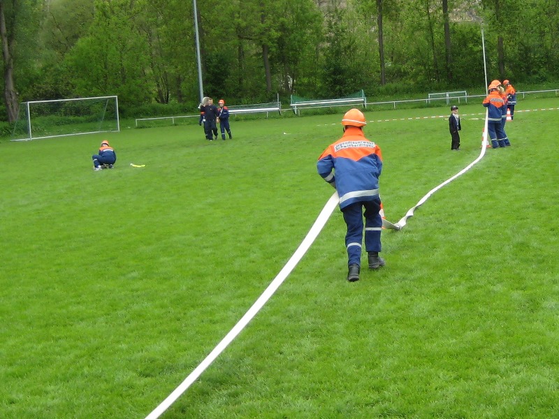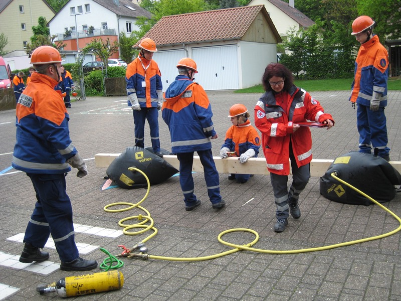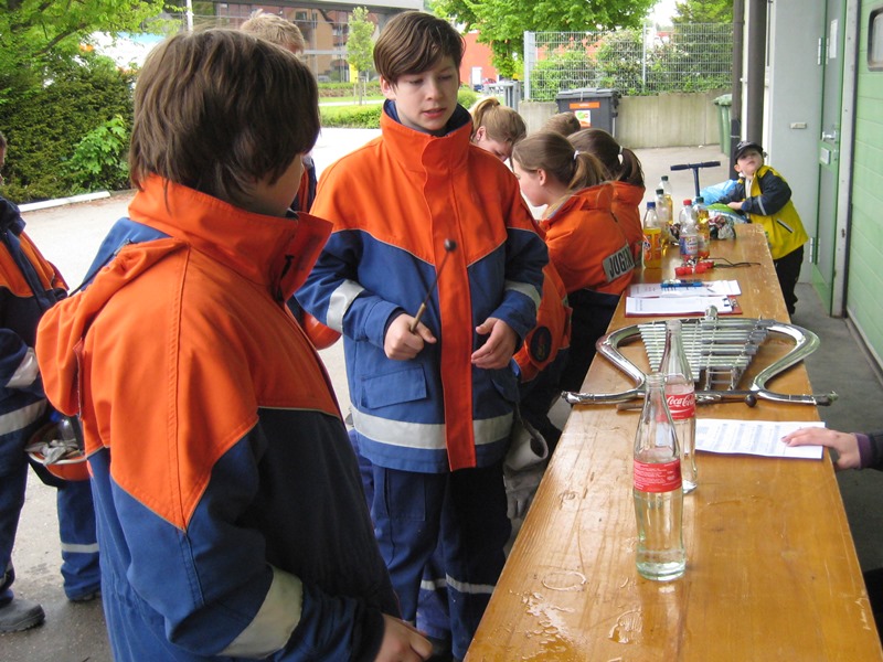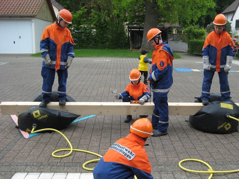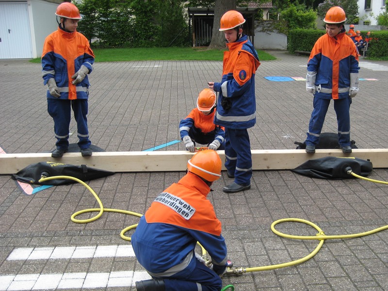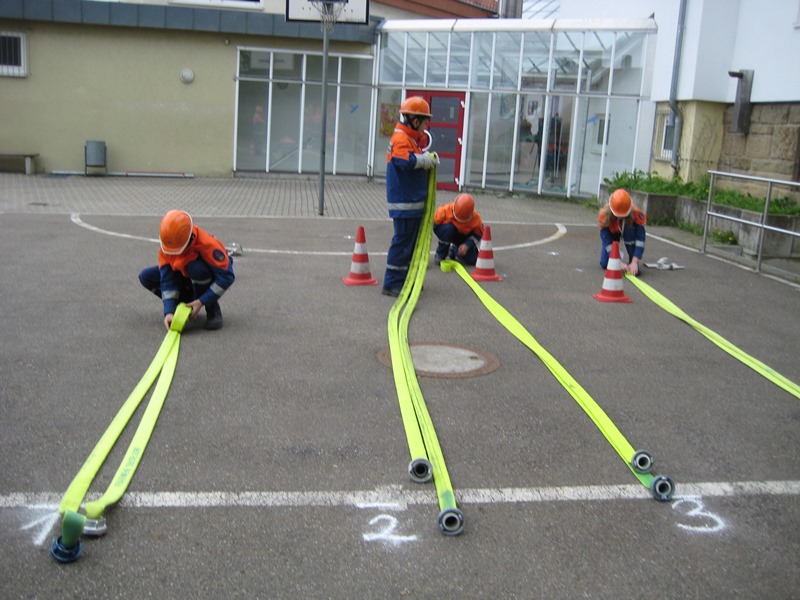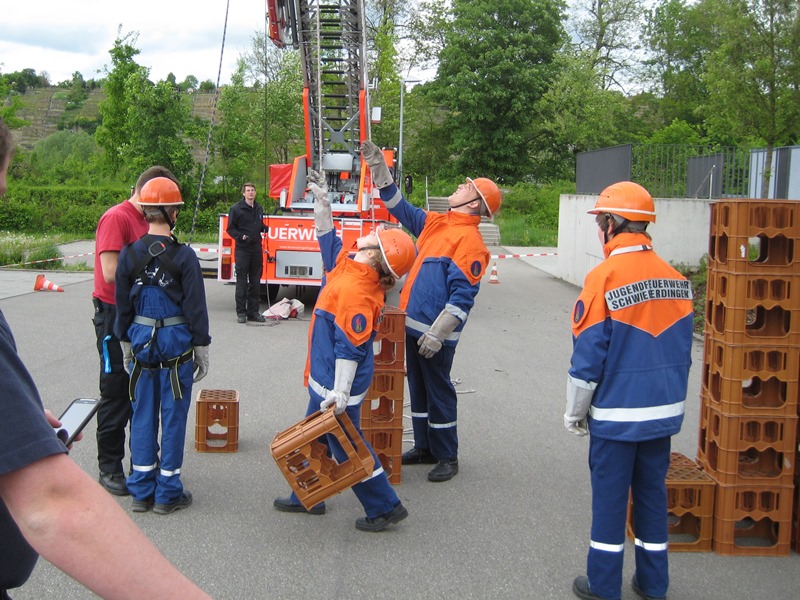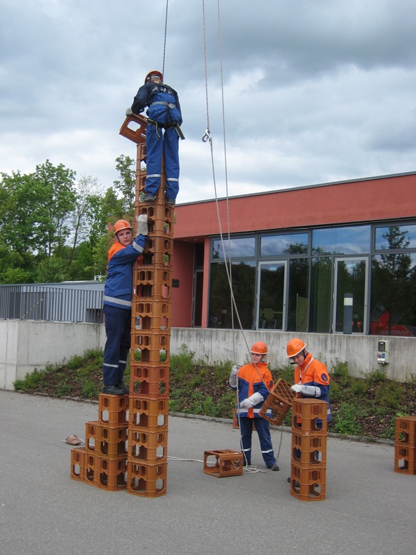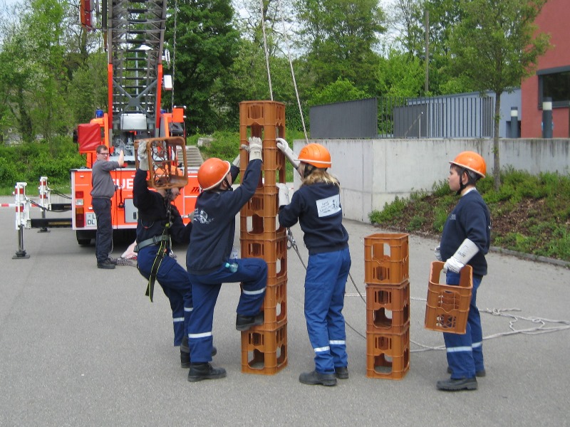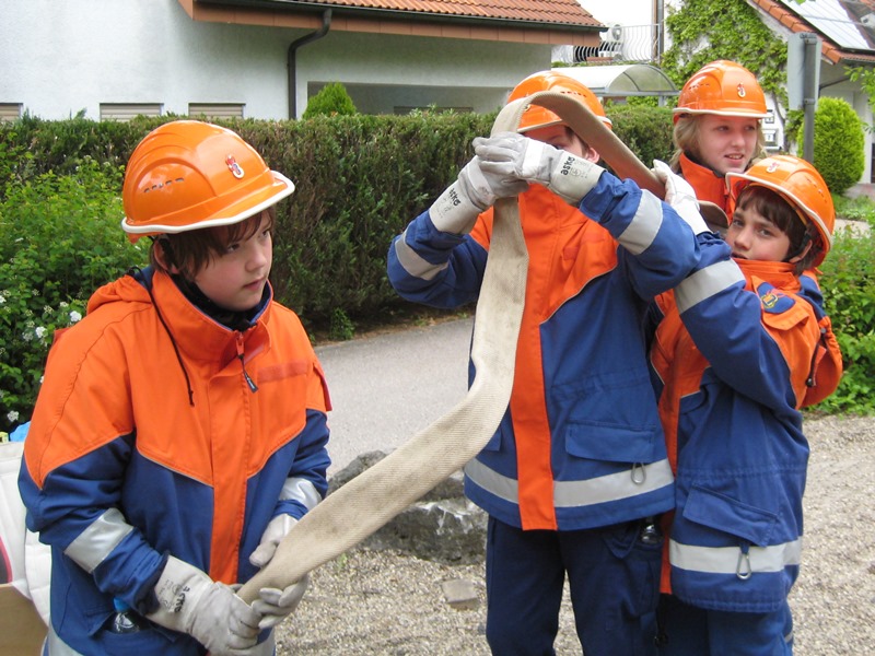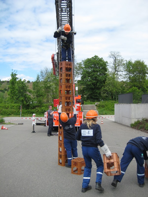 Physikalisch wurde es am Kindergarten, da mit Hebekissen ein Holzbalken so angehoben werden musste, dass er im Wasser steht mit 2 Kinder darauf stehend. Eine Herausforderung war es einen Tischtennisball durch einen C-Schlauch zu fusseln und am Bauhof mit 5 Flaschen, die man selbst mit Wasser füllen musste, „Hänschen klein“ spielen sollte. Beim Sportplatz konnten wir unsere Technik bei der Schlauchstaffel zeigen und an der Sporthalle ging es beim Kistenstapeln hoch hinaus.