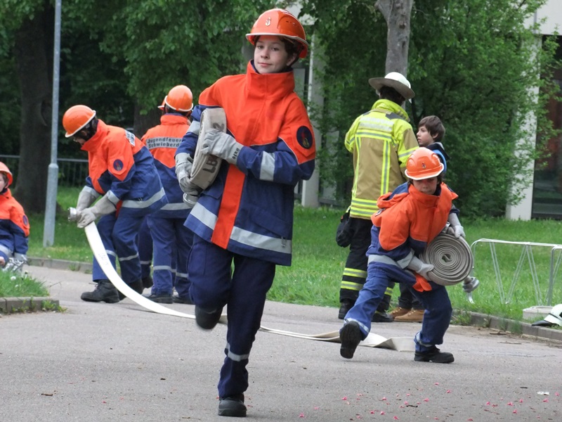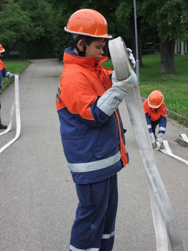 Die Aufgabe wurde erst durchgesprochen und danach langsam praktisch gemacht, während des praktischen Durchgangs wurde gemerkt, dass es doch noch viele Unklarheiten gibt. Also wird es die Nächsten Übungen ebenfalls heißen Löschangriff mit Wasserentnahmestelle offenes Gewässer, sodass die Leistungsspange dann kein Problem darstellen sollte. Die Jüngeren übten daneben auf dem Gehweg eine Schlauchstaffel und somit was es heißt eine lange Strecke an Schläuchen in kurzer Zeit zu legen. Am Ende gab es dann noch Gummibärchen und Schaumküsse, weil leider ein Jugendfeuerwehrmitglied aus Schwieberdingen wegzieht und somit die Jugendfeuerwehr verlassen muss.