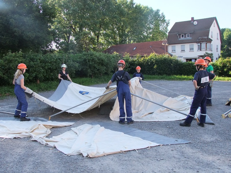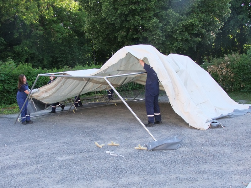 Jugendfeuerwehrübung vom 06.06.2013Heute bauten wir die Zelte für das Kreiszeltlager im August zur Probe auf. Ein großes Jungen Zelt, und ein etwas kleineres Mädchen Zelt. Nun wussten wir, dass die Zelte vollständig und funktionstüchtig für dieses große Ereignis sein würden. Nachdem wir Alles wieder verstaut hatten, gab es auf der Wache noch sehr leckeren Kuchen.