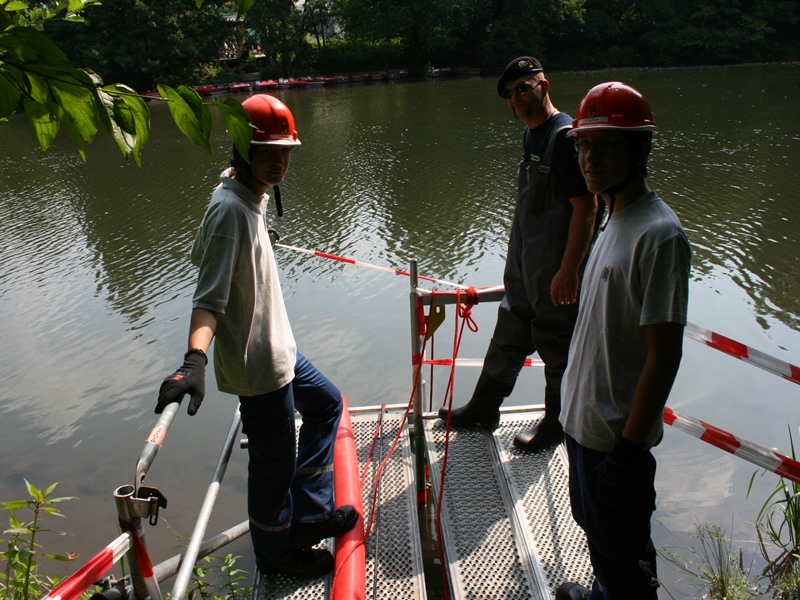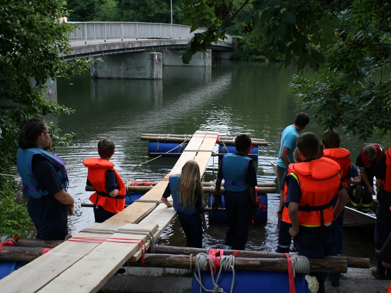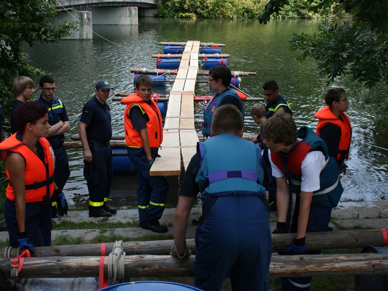 Der Spannendste Teil des Projektes war die Errichtung einer Tonnenstegbrücke über die Enz sein. Aber auch viele weitere Vorführungen waren auf der Tagesordnung, so wie auch ein Trümmerplatz aufgebaut wurde, von wo anschließend Rettungs- und Bergeübungen gezeigt werden konnten. Ebenfalls Konstruierten die Jugendlichen eine Rettungsseilrutsche, aber auch das Umpumpen von Flüssigkeiten (Enzwasser) spielte eine Rolle in diesem Projekt. Die Jugendlichen sollten Ihr Können vorführen und unter Beweis stellen. Es wird damit aufgezeigt, dass die einzelnen Hilfsorganisationen miteinander „vernetzt“ sind und die Zusammenarbeit unerlässlich ist. Den Jugendlichen ist es wichtig dies zu demonstrieren, um weitere Jugendliche anzusprechen und für die Begleitung eines Ehrenamtes zu begeistern.