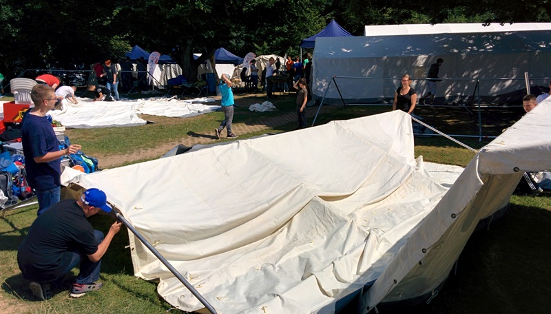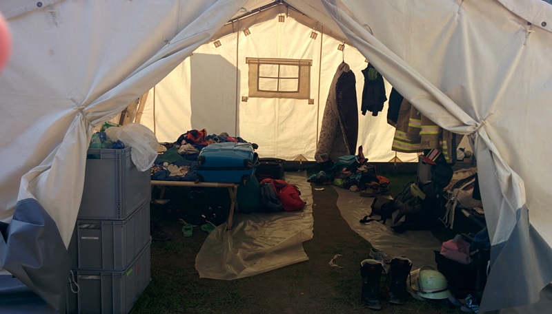 Samstag hieß es leider wieder Nachhause fahren. Durchgeschwitzt von der langen Fahrt wurden die Zelte und Feldbetten noch einmal aufgebaut und gereinigt. Die Woche Zeltlager und der Regen hatten die Materialien sehr mitgenommen. Dank der Unterstützung der Einsatzabteilung konnten wir jedoch alles schnell säubern und wieder ordnungsgemäß verstauen.