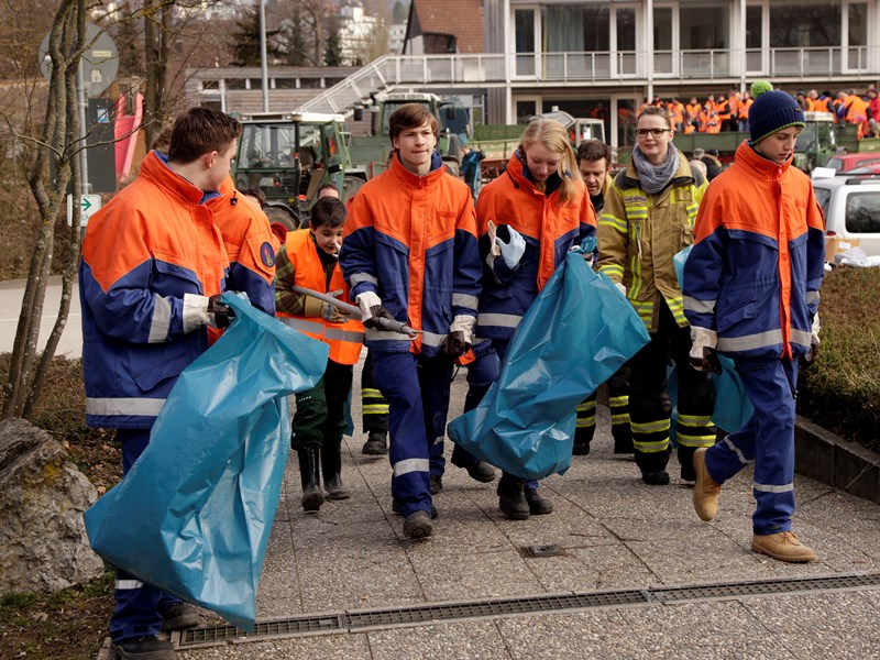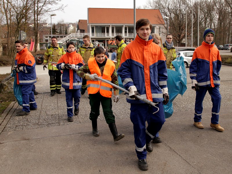 Die Sonne hat ihr Übriges zu unserer guten Laune getan, so dass wir, auch Dank unserer großen Gruppe, als erste am Ziel angekommen sind. Leider können wir dieses Jahr nicht von spektakulären Funden berichten, außer Sportschuhe, Fußball, Flaschen, Dosen und jede Menge Verpackungen, Folien, usw. Schön war, dass es weniger Müll war, wie in den Vorjahren - weiter so! Ein Highlight war wieder das Traktorfahren. Danke an unseren Chauffeur Marin! Gestärkt mit einem leckern Mittagessen von der Gemeinde wurden wir wieder zurück zur Feuerwehr gefahren und dann waren die Stiefel und Hosen mit Putzen dran.