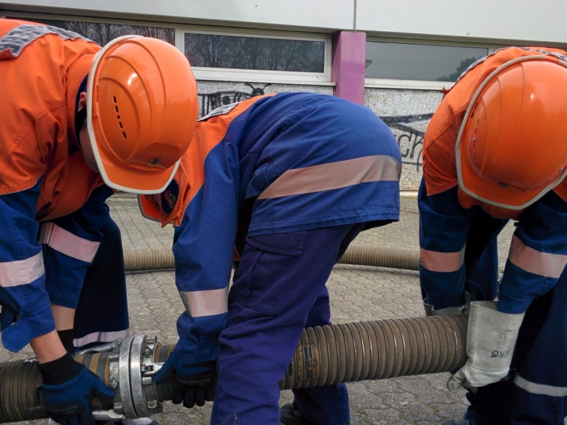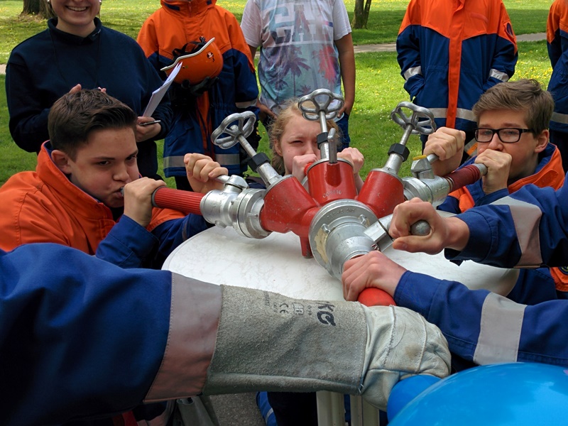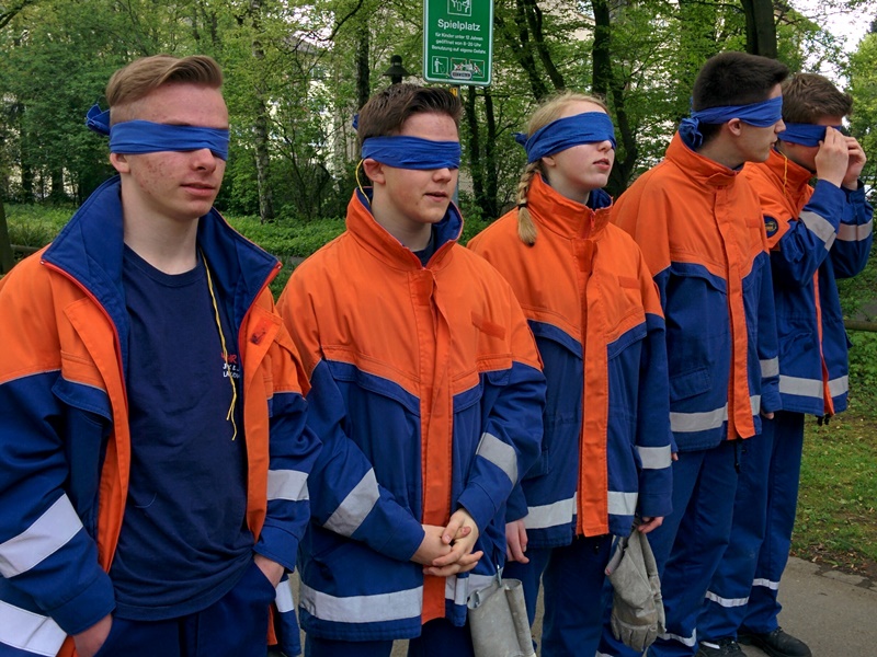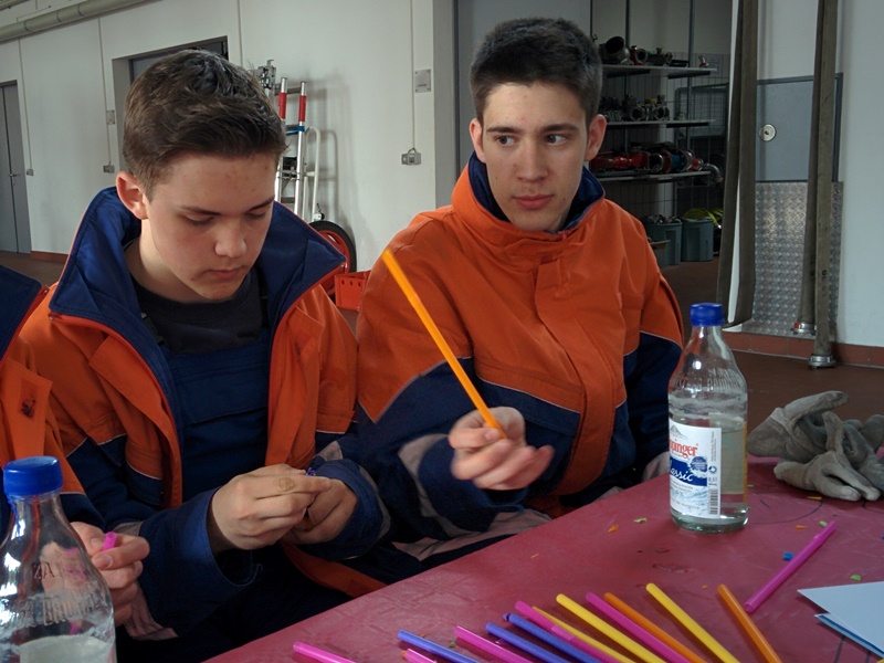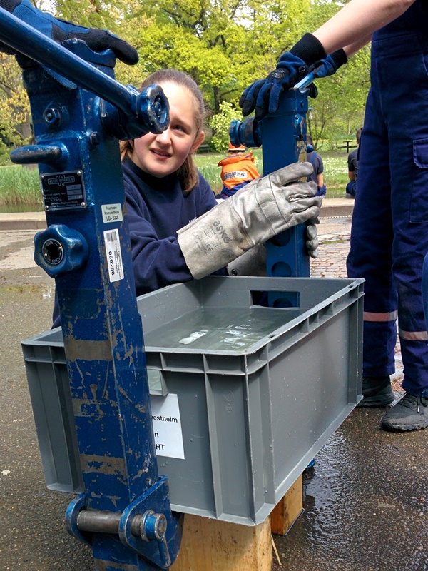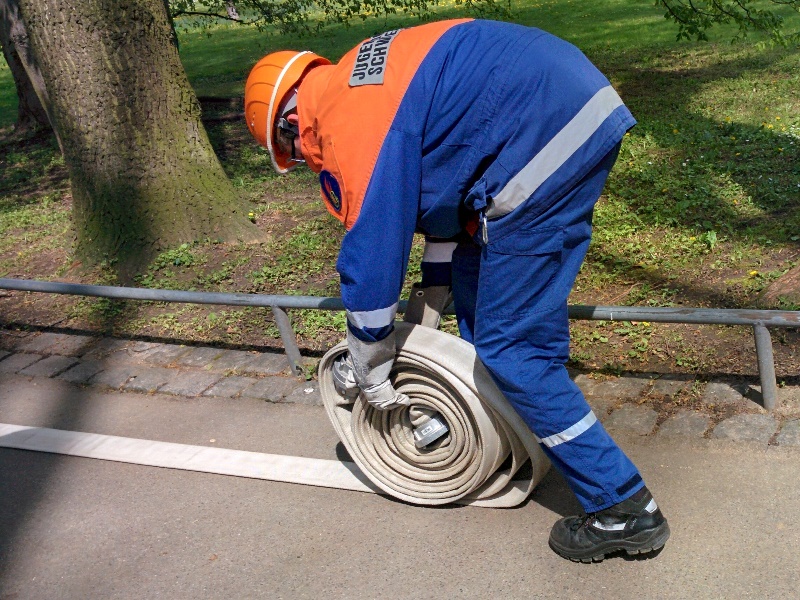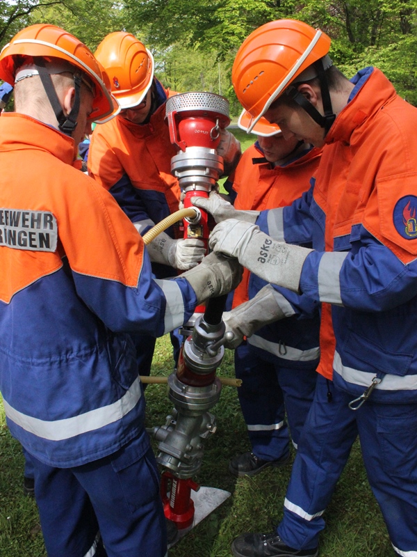 So galt es mit Feuerpatschen einen Tischtennisball über eine Strecke von 20 Metern zu befördern. Als besonders knifflig stellte sich auch die Aufgabe heraus, einen Golfball durch einen B-Schlauch zu befördern. Beinahe ging einigen die Puste beim Zerknallen eines Luftballons aus, mit vereinten Kräften stellte jedoch auch diese Station kein Hindernis dar. Bei herrlichem Sonnenschein ließ sich auch die ein oder andere Wasserstation mit Leichtigkeit ertragen.