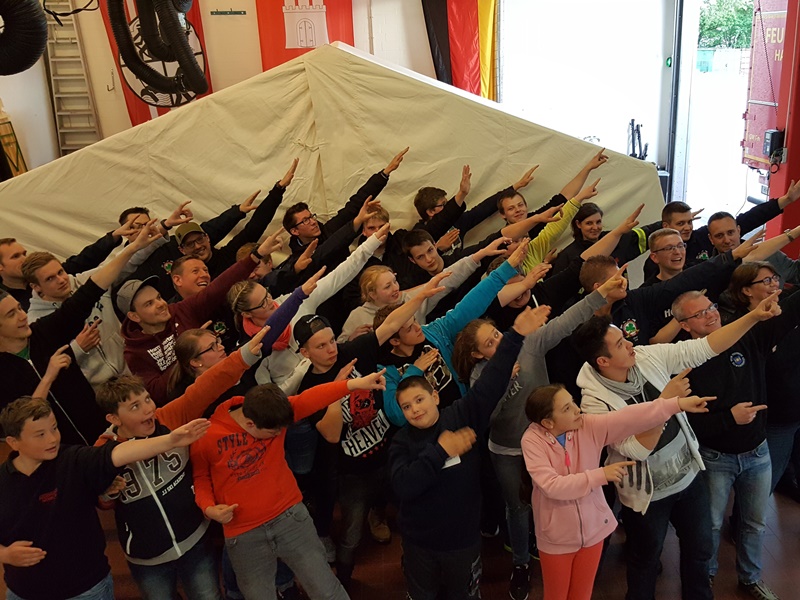 Am nächsten Morgen wurden wir schon früh von den Jugendleitern geweckt. Nach einem guten Frühstück, bauten wir auch schon unser Zelt, indem wir jede Nacht schliefen ab, um den Festakt vorzubereiten. Der Festakt bestand aus einem offiziellen Teil, bei dem viele Reden gehalten wurden. Auch unser Kommandant Jürgen Jonetzko und stellvertretender Jugendwart Sven Mettler gratulierten zum Geburtstag und übergaben unser kleines Geburtstagsgeschenk. Darauf folgte ein gutes Mittagessen und eine große Stadtralley, in der wir den ersten Platz belegten. Dabei bekamen wir schon etwas von der Stadt zu sehen. Der Abend klang im Feuerwehrhaus bei guter Stimmung und viel Spaß aus.