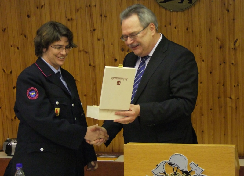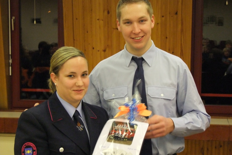 Jugendfeuerwehrwart Jens GroßeAm 13.01.2011 fand unsere alljährliche Jahrehauptversammlung der Jugendfeuerwehr statt. Wir konnten unsere treue Gäste Bürgermeister Gerd Spiegel, Kommandant Thomas Krauß, dessen Stellvertreter Jürgen Jonetzko und Kreisjugendfeuerwehrwart Michael Neubauer begrüßen. Nach der Tagesordnung kam nach der Begrüßung die Berichte. Zuerst und zum letzten Mal im Amt der Jugendfeuerwehrwartin las Silja ihren Bericht vor. Es konnte einen Mitgliederstand zum 31.12.2010 von 22 (!) Jugendlichen in einem Altersdurchschnitt von 12,8 Jahren verzeichnet werden. Im Berichtsjahr gab 11 Neuaufnahmen, 1 Austritt wegen Wohnortwechsel und 4 Übernahmen in die Aktive Wehr. Es standen insgesamt 128 Stunden Jugendarbeit und vier Ausflugstage auf dem Dienstplan. Über die Aktionen und Übungen berichtete unser Schriftführer Jakob Link. Nun folgten Dankesworte und Lobe an die Jugendleitung und die Jugendfeuerwehrler von Bürgermeister Gerd Spiegel, Kommandant Thomas Krauß und Kreisjugendfeuerwehrwart Michael Neubauer für das Engagement der Jugendfeuerwehr und die geleistete Jugendarbeit im Ort und überörtlich. Einstimmig wurde die Jugendleitung entlastet und es standen die Wahlen der Jugendfeuerwehrwarte turnusmäßig an. Während der Auswertung der Wahlzettel wurde das Programm 2011 vorgestellt und der Tagesordnungspunkt „Verschiedenes“ vorgezogen. Jens Große wurde zum Jugendfeuerwehrwart gewählt und löst Silja Klein ab, die aus familiären Gründen nicht mehr zur Wahl stand. Dieter Ohsam wurde zu dessen Stellvertreter wieder gewählt. Hier noch herzlichen Glückwunsch, ein gutes Händchen und liebe Kinder!