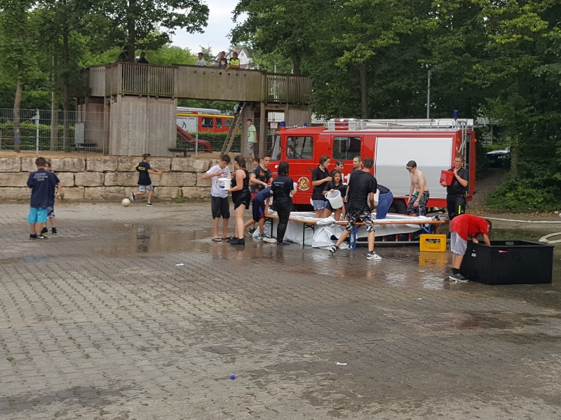 Bei tollem Wetter und viel Sonnenschein war in diesem Jahr Schwieberdingen der Gastgeber dieser besonderen Übung. Über 100 Jugendliche fanden an diesem Übungsabend den Weg zu uns ins Feuerwehrhaus. Trotz der ergiebigen Hitze an diesem Tag gab es - nicht zuletzt durch unseren Pool - örtliche Schauer, die auch nicht von den Jugendleitern Halt machten. Das Wasser ergoss sich sprichwörtlich wie aus Eimern. Neben dem traditionellen gemeinsamen Essen gab es auch einen Niederseilgarten der Jugendfeuerwehr im Bereich der Kita und eine randvoll mit Wasser gefüllte Auffangwanne, welche für einen kurzweiligen Abend sorgte.