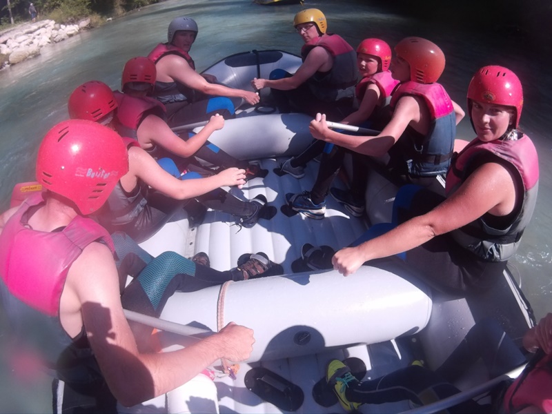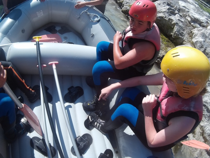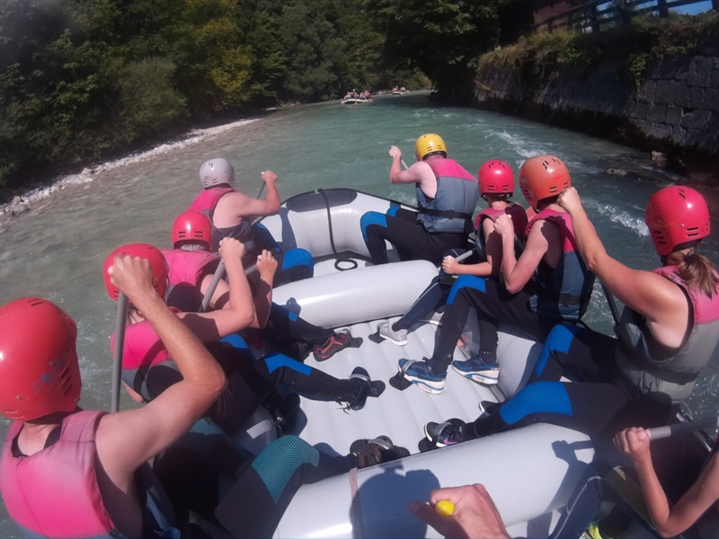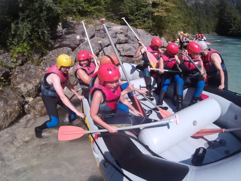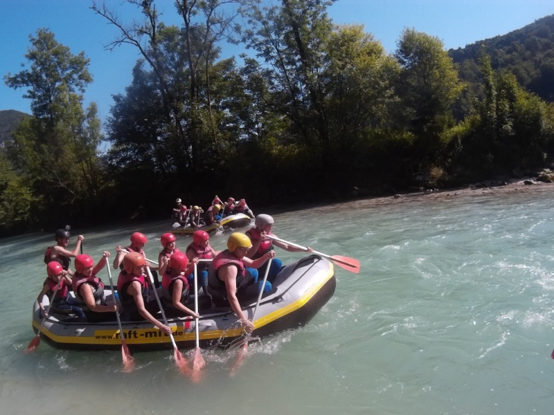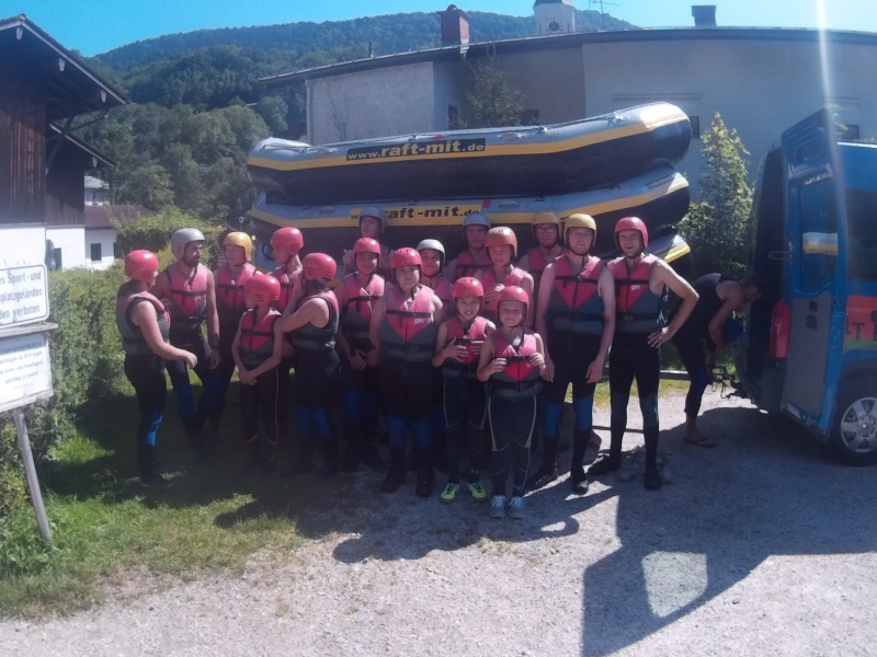 Noch etwas Müde vom Wandern und der kurzen Nacht ging es am Dienstag zum Rafting nach Berchtesgaden. In Schlauchbooten und mit Paddeln bewaffnet stützten wir uns unter fachmännischer Anleitung hinein ins kalte Wasser. Der heiße Nachmittag ließ sich beim Baden und Rumtoben im Abtsdorfer See gut verbringen.