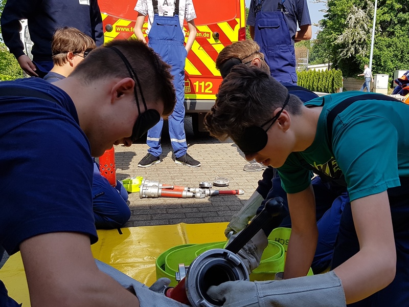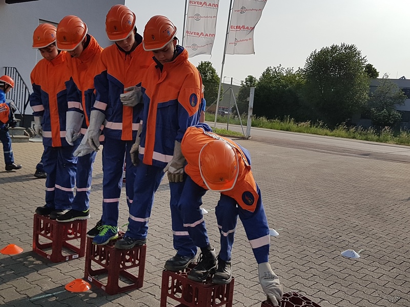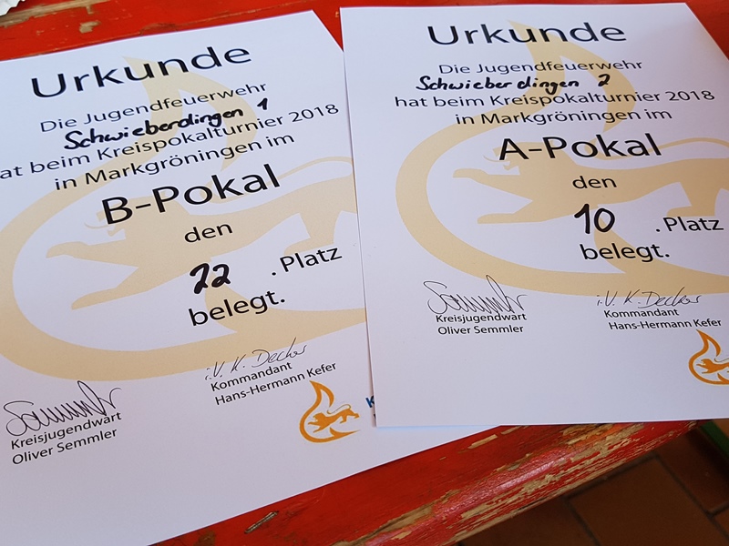 Die Jugendfeuerwehr Schwieberdingen war am Samstag, den 05. Mai in Markröningen beim Kreispokal unterwegs. Wir trafen uns schon um 8.00 Uhr und fuhren wir mit dem Fahrrad durchs Industriegebiet Schwieberdingen, über das Lange Feld nach Markröningen zum Feuerwehrhaus. Als wir um 9.00 Uhr angekommen waren, hieß es unsere Jugendfeuerwehruniform anziehen und anmelden. Weil wir so eine große Gruppe waren, wurden wir in 2 Gruppen eingeteilt. Schwieberdingen 1 war U13 und hat bei dem B-Pokal - einen Pokal für die jüngeren - und Schwieberdingen 2 hat sich beim A-Pokal für die älteren mitgemacht. Über den ganzen Tag verteilt gab es 14 Stationen.