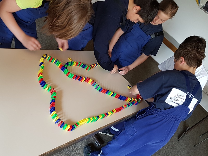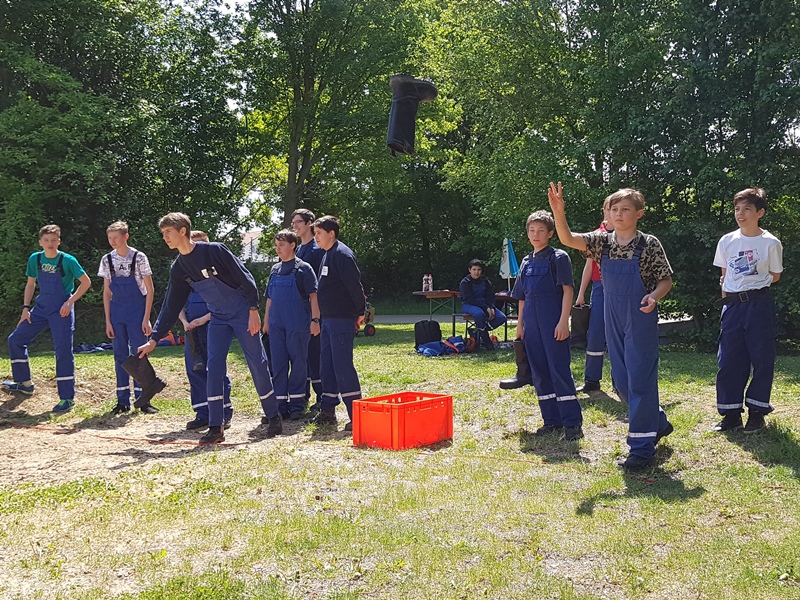 Unter den Stationen gab es Schlauchkegeln, Kistenwettlauf, Domino Day und Skulpturen blind bauen. Um 15.00 Uhr versammelten wir uns alle in der Fahrzeughalle zur Preisverleihung. Zu Beginn bedankten sich der Bürgermeister und Kreisjugendfeuerwehrwart über die Teilnahme von den über 200 Jugendlichen aus dem ganzen Landkreis. Neben dem Kreispokal feierten wir auch 20 Jahre Jugendfeuerwehr Markröningen.