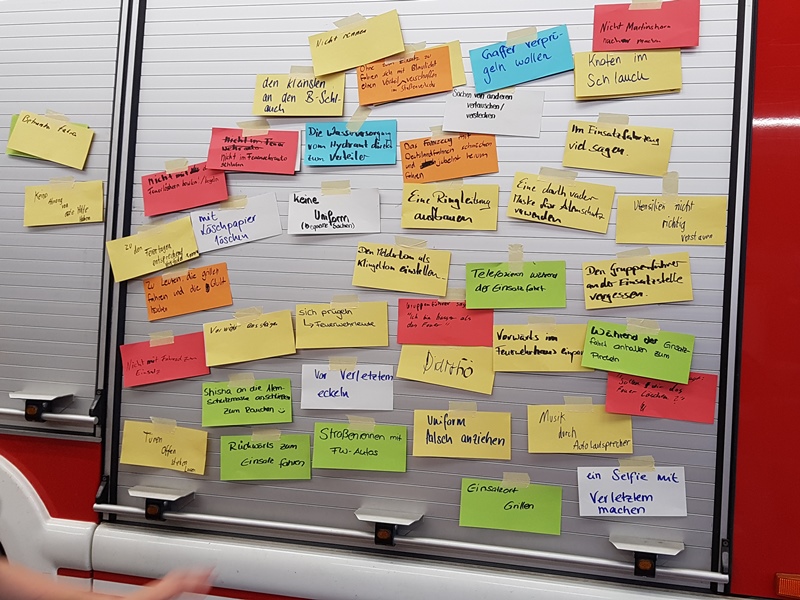 Der Kick-off zu diesem Projekt sollte anlässlich der Übung vom 21.06.2018 erfolgen. Die Jugendlichen hatten sich in den Kopf gesetzt, ein kleines Video mit Episoden aus dem Jugendfeuerwehralltag zu drehen. Im ersten Schritt wurden erst einmal Ideen gesammelt und bewertet.