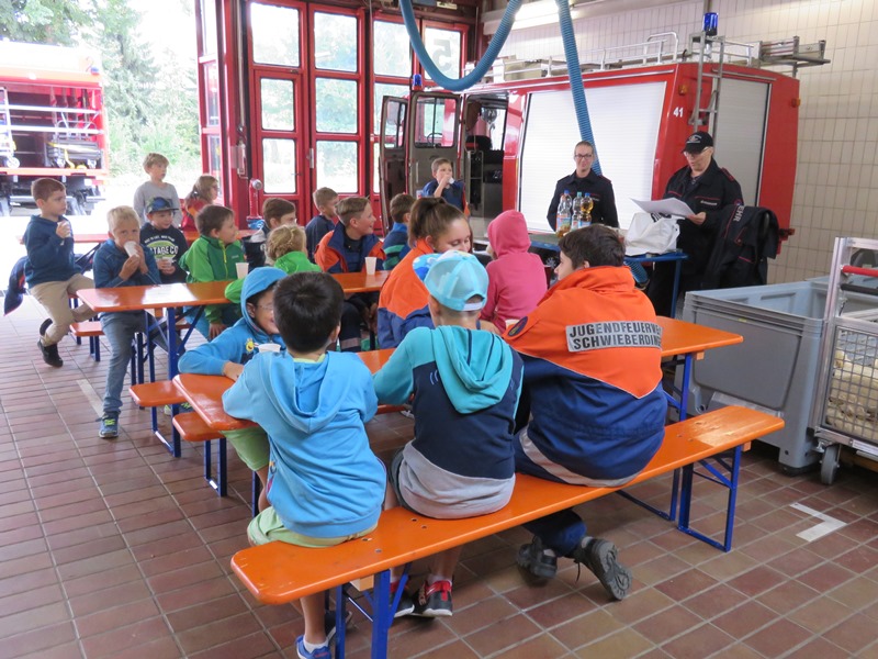 Wieder angekommen im Feuerwehrhaus, wurden die Fahrzeuge sprichwörtlich noch einmal auseinander genommen und die Feuerwehrleute mit Fragen gelöchert.