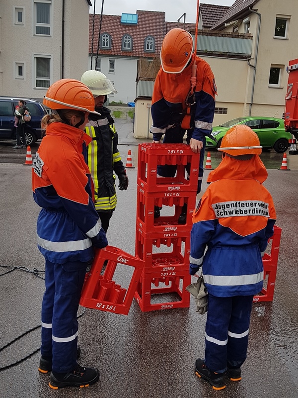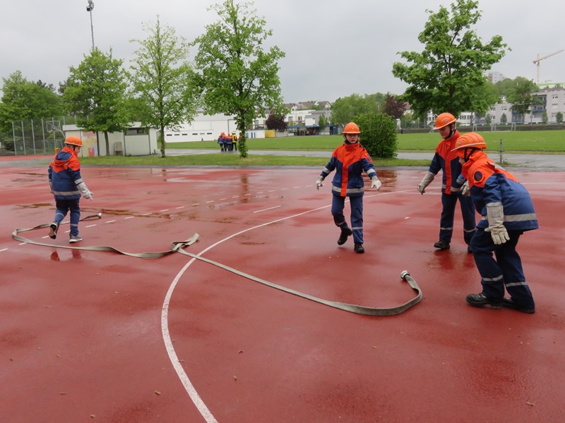 Auch der Regen konnte dem Spaß am Kreispokal keinen Abbruch machen. Auf dem Programm standen Schlauchkegeln, Kistenstapeln, Zielspritzen und viele andere Sportaktionen. Zum Abschluss gab es noch leckeres Essen. Auf Grund des starken Regens wurden wir dann mit dem MTW und unserem GWT in Möglingen abgeholt.
