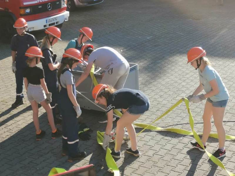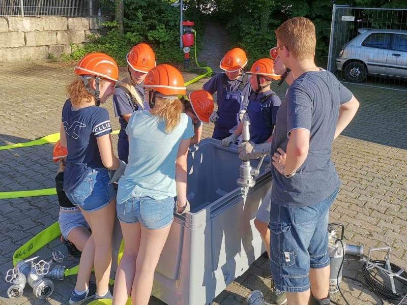 Am 27. 6. 2019 traf sich die Jugendfeuerwehr um 18:30 Uhr zu einer weiteren Übung. Nach kurzer prüfung der Vollständigkeit, begutachteten wir das neuste Fahrzeug der Feuerwehr. Als alle Fragen rund um das Fahrzeug geklärt worden waren stellte sich die gesamte Jugendfeuerwehr vor das Fahrzeug. Als die Jugendfeuerwehr und ihre Leiter fotografiert worden waren, teilte man uns in zwei Gruppen ein.