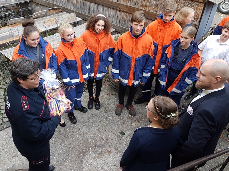 Hochzeit von Annette und ChristianUnsere Jugendleiterin Annette hat sich getraut und ihren Christian geheiratet. Wir freuen uns mit ihr und wünschen den beiden ganz viel Glück und tolle, gemeinsame Momente. Selbstverständlich ließen wir es uns nicht nehmen und gratulierten persönlich an diesem Festtag. Unser verrücktes Geschenk aus vielen kleinen Holzbausteinen und bunten Kaubonbons soll für beide immer in Erinnerung bleiben.