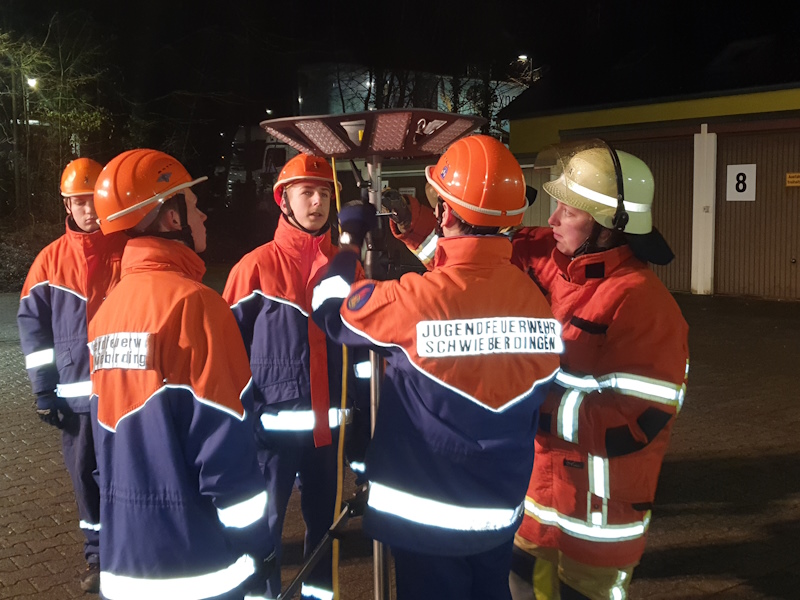 Ausleuchten und Absichern der EinsatzstelleDie eigene Sicherheit hat an Einsatzstellen für Feuerwehrleute oberste Priorität. Daher hatte die Jugendfeuerwehr Schwieberdingen im Januar als Übungsthema ,,Absichern und Ausleuchten von Einsatzstellen”.