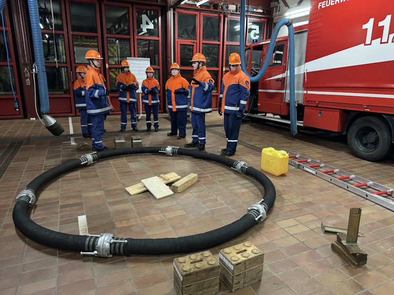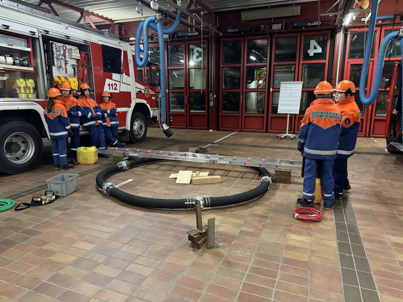 In der Jugendfeuerwehrübung am 12.12. bekamen wir die knifflige Aufgabe – technische Hilfeleistung, um einen verschütteten Schokoladennikolaus aus einem Ring von Saugschläuchen zu retten. Das schwierige daran war, dass die Schläuche, sowie das innere des Rings nicht berührt werden durften. Der Nikolaus war unter schweren Trümmerteilen, simuliert aus kleinen Brettern, begraben.