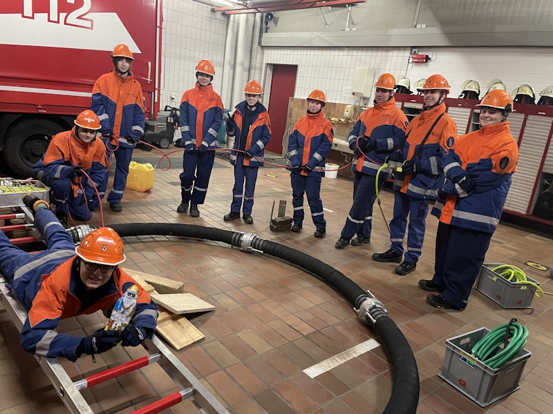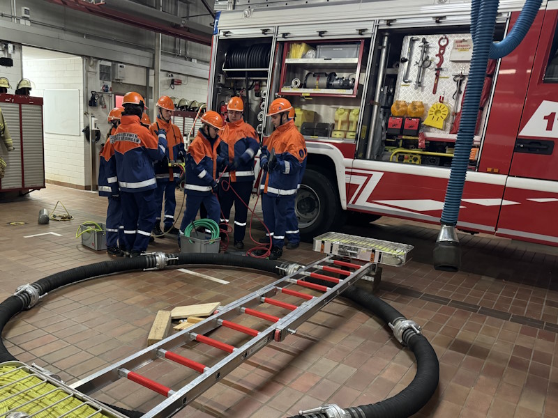 Nach gründlicher Überlegung bauten wir aus Steckleitern und Unterbauungsmaterial für Autounfälle eine Brücke, um zum Nikolaus zu gelangen. Mithilfe des Hebekissens hoben wir die Bretter an, um den Nikolaus zu retten. Nachdem wir abgebaut hatten, fand ein gemeinsamer Ausklang statt. Unsere Betreuer belohnten uns mit leckeren selbstgemachten Waffeln. Der gerade erst gerettete Nikolaus wurde dabei selbstverständlich von uns verspeist.