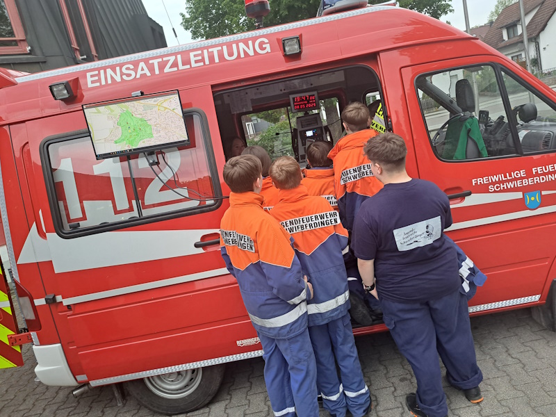 Zu Beginn gab es ein kurzes Aufwärmspiel sowie die Einteilung der Gruppen. Am Bildschirm des Einsatzleitwagens (ELW) wurde der Suchbereich festgelegt und uns die fehlenden Informationen übermittelt. Dann ging es los ...