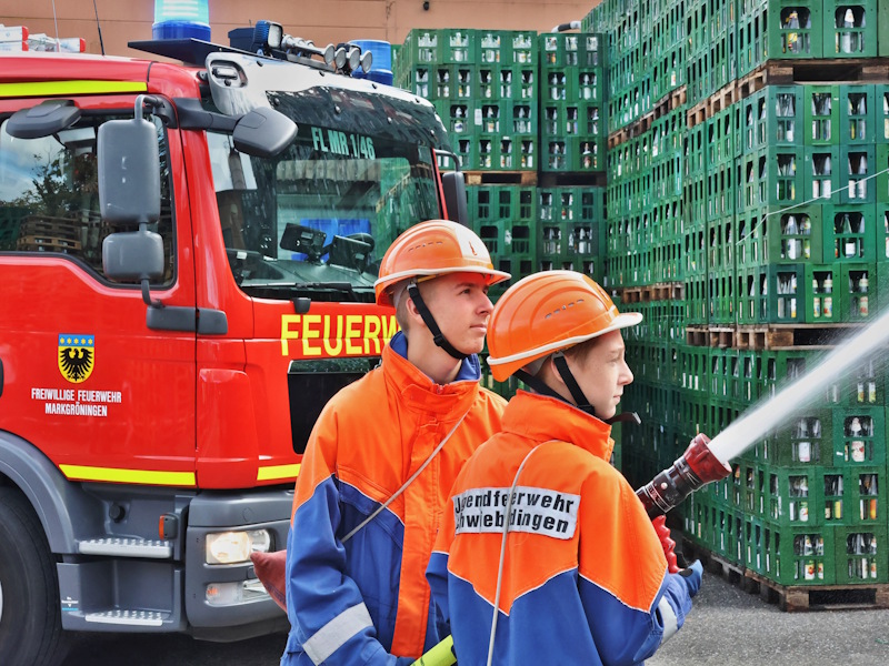 Die Aufgabe der Jugendlichen war es, die Wasserversorgung aufzubauen, die vermissten Personen aus dem Gebäude zu retten, das Feuer zu löschen und mit einer Riegelstellung das Übergreifen der Flammen auf andere Gebäude zu verhindern. Nach erfolgreicher Meldung „Feuer aus – Übungsende“ gab es ein großes Lob und viel Applaus für die Jugendlichen. Im Anschluss fuhren wir wieder zurück ins Feuerwehrhaus nach Markgröningen, wo noch ein gemeinsames Essen auf uns wartete.