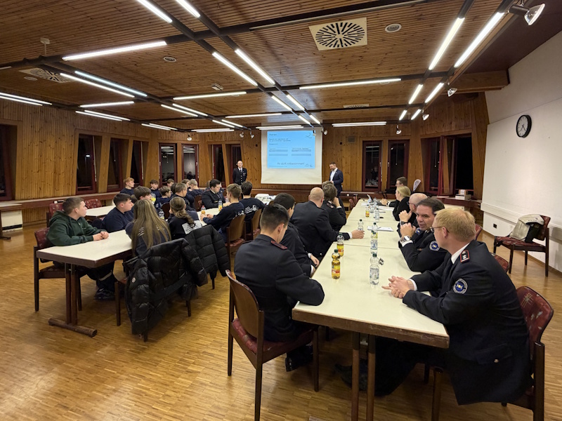 Gemäß der Tagesordnung begrüßte Jugendwart Jens Große alle Anwesenden und gab einen umfassenden Überblick über Zahlen, Daten und Fakten des Jahres 2025. Mit über 1.500 Stunden Jugendarbeit bei insgesamt 56 Terminen zeigte sich erneut das hohe Engagement innerhalb der Jugendfeuerwehr. Neben den regelmäßigen Übungsdiensten umfassten die Aktivitäten unter anderem das Zeltlager, die Ferienspiele, die Bezirksübung, das Bezirksgrillen sowie verschiedene Verwaltungs- und Sitzungstermine auf Gemeinde- und Kreisebene. Trotz einiger Zu- und Abgänge waren zum Jahresende 28 Jugendliche aktiv in der Jugendfeuerwehr Schwieberdingen.