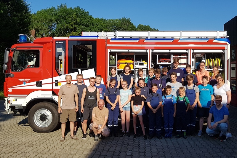 Am 27. 6. 2019 traf sich die Jugendfeuerwehr um 18:30 Uhr zu einer weiteren Übung. Nach kurzer prüfung der Vollständigkeit, begutachteten wir das neuste Fahrzeug der Feuerwehr. Als alle Fragen rund um das Fahrzeug geklärt worden waren stellte sich die gesamte Jugendfeuerwehr vor das Fahrzeug. Als die Jugendfeuerwehr und ihre Leiter fotografiert worden waren, teilte man uns in zwei Gruppen ein.