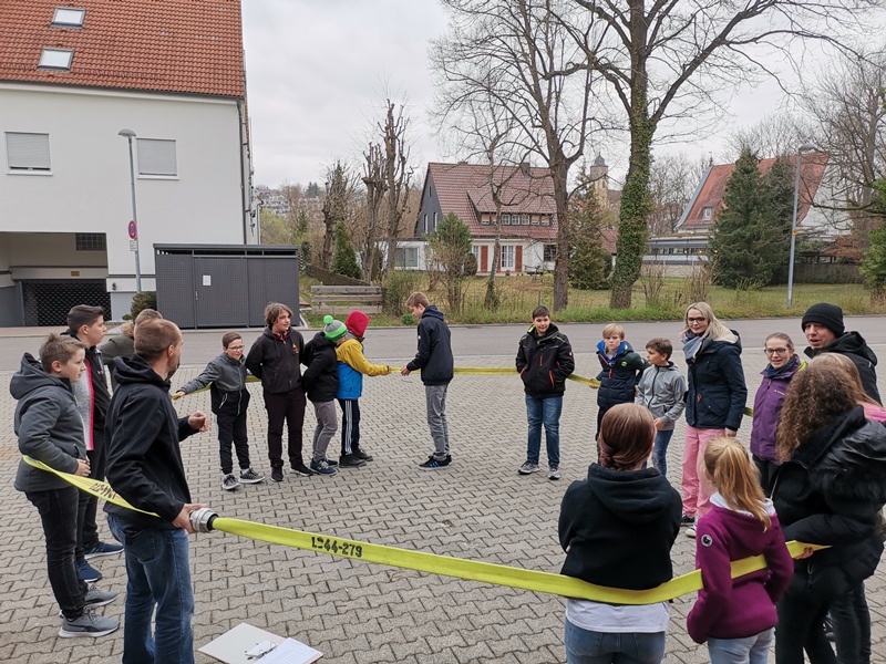 Die Übung am 28. Februar 2019 begann mit der üblichen Vollständigkeitskontrolle, wozu wir uns vor dem Gerätehaus aufstellten. Um für die bevorstehenden Aufgaben in gerechte Gruppen eingeteilt werden zu können, stellten wir uns dem Alter nach auf und zählten eins zwei durch. Die Einser sollten sich zu einer Seite des Gerätehauses begeben, die Zweier auf die andere Seite. Die zwei Seiten waren durch ein Feuerwehrauto als Sichtschutz getrennt - nicht dass noch einer vom andern abschaut! Die zwei Gruppen bekamen je eine Aufgabe, die sie mit den Sachen auf ihrem zugeteilten Feuerwehrauto zu lösen hatten. Die zwei Aufgaben der Gruppen lauteten wie folgt: