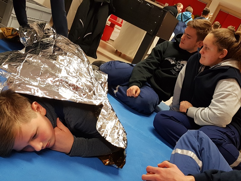 Das 24-Stundenprojekt begann am 28.9.2018 um 16:00 Uhr am Gerätehaus der Feuerwehr. Zu Anfang bauten wir erst einmal alle Feldbetten auf und richteten alles für den bevorstehenden Tag und die Nacht. Nachdem wir alles hingerichtet hatten, besprachen wir die Schichteinteilungen. Wir wurden verschiedenen Fahrzeugen zugeteilt und hatten auch alle eine wichtige Aufgabe für die nächsten Schichten. Um uns fit zu halten machten wir ein wenig Sport und spielten ein kleines Spiel. Wir waren gerade fertig, als eine Durchsage aus den Lautsprechern von der Zentrale im ganzen Haus ertönte.