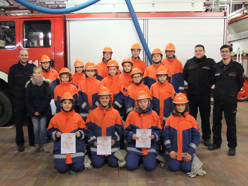 Anlässlich einer der letzten Übungen der Jugendfeuerwehr am 07.12.2017 stand noch einmal eine richtig große Prüfung auf dem Dienstplan. Im Rahmen der Übung sollten die Abnahmen für die Jugendflamme Stufe 1, Stufe 2 und Stufe 3 erfolgen. In ihren drei Stufen fragt die Jugendflamme das altersspezifische Wissen der Jugendlichen ab.