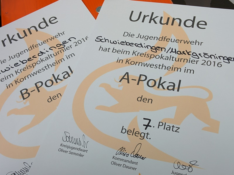 Auch beim 34. Kreispokalturnier der Jugendfeuerwehren im Landkreis Ludwigsburg war die Jugendfeuerwehr Schwieberdingen vertreten. Ausgerichtet wurde der Kreispokal am 30. April 2016 durch die Feuerwehr Kornwestheim. Rund um das Feuerwehrgerätehaus und dem anschließendem Salamanderpark galt es, über den Tag hinweg viele verschiedene Stationen aus dem Jugendfeuerwehralltag zu bewältigen.