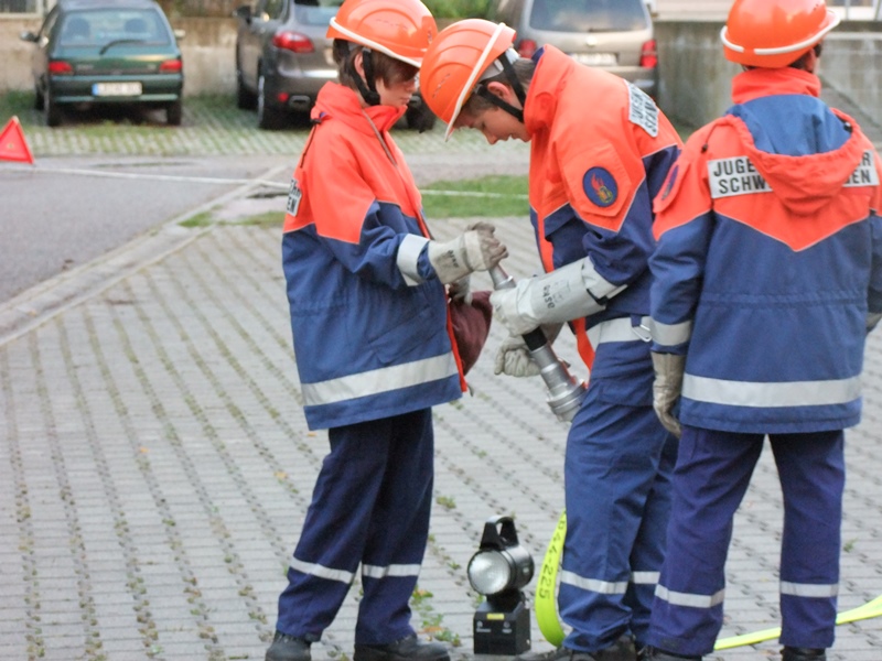 Die Jugendfeuerwehr Schwieberdingen hat am 28.09.2013 gemeinsam mit den anderen Jugendfeuerwehren aus Tamm, Asperg, Markgröningen und Möglingen eine Bezirksübung in Möglingen gemacht. Wir sind um 14:30 Uhr los gefahren und kamen um 15:00 Uhr an. Wir konnten noch etwas trinken und besprechen. Dann fuhren wir los. Kurze Zeit später hielten wir an einer angezündeten Hütte an und stellten uns hinter der Metzi an.