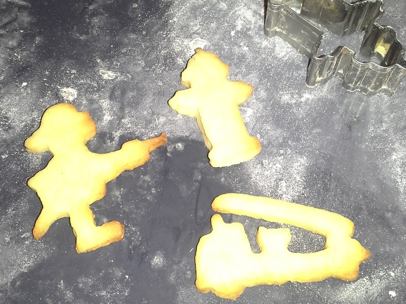 ein Ausstecherle, das ihr gerne hab´t, ein Wellholz, das keine Risse hat, ein Schurz den man auch waschen kann, die Uniform muss an dieser Übung auch nicht ran.