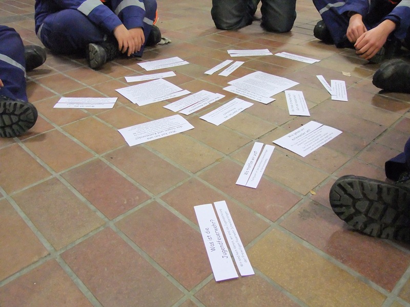 Heute war die erste Übung in diesem Jahr. Sie stand ganz im Zeichen der Organisation. Es wurde die JFW Ordnung besprochen, sowie die Inventur gemacht. Während die "U14" in einer Gruppe Memory mit den Regeln der JFW und deren Erklärungen spielten, sowie ihre Meinungen zur JFW aufschrieben, machten die "Ü14" in einer anderen Gruppe das Gleiche, selbstverständlich wurde nicht NUR gearbeitet :).
