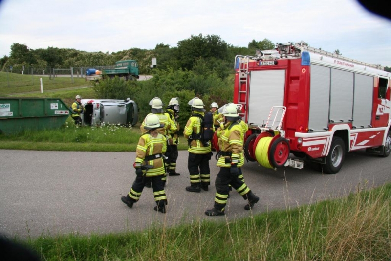 Für die Einsatzübung wurde um 20:05 Uhr im Bereich der Deponie Froschgraben in Schwieberdingen ein Verkehrsunfall zwischen einem Lkw und einem Pkw gemeldet. Beim Eintreffen der ersten Feuerwehrkräfte fanden diese einen verunglückten Pkw vor, in welchem zwei Personen eingeschlossen waren sowie einen Entstehungsbrand im Motorraum des Fahrzeuges. Weiter stand ein mit Fässern und Kanistern beladener Lkw auf der Zufahrtstraße zur Deponie, ein Teil seiner Ladung befand sich auf der Fahrbahn, aus beschädigten Fässern ergoss sich deren Inhalt über die Fahrbahn in die öffentliche Kanalisation.