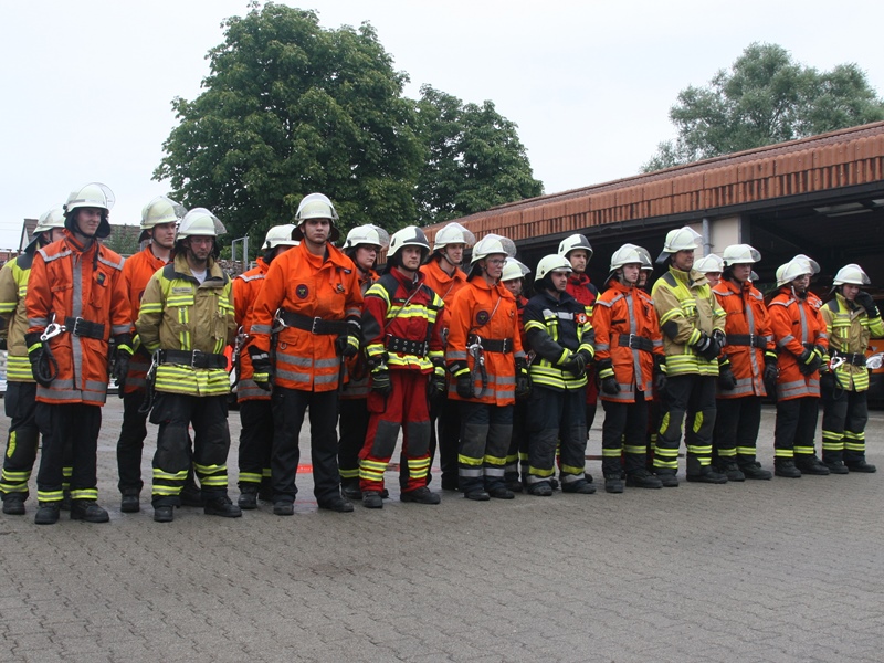 Eine Laufbahn bei der Freiwilligen Feuerwehr startet mit der sogennanten Grundausbildung. Diese kann teilweise mit dem Eintritt in die Jugendfeuerwehr oder mit einem freiwilligen Eintritt in die Feuerwehr beginnen. Für Jan-Henrik Busch, welcher aus der Jugendfeuerwehr kam und Stefan Benker, war es am 05.07.2014, nach Beendigung der Abschlussprüfung soweit. Die Grundausbildung, welche ungefähr 70 Stunden Theorie und Praxis fordert, bereitet die neuen Mitglieder auf das wichtigste im späteren Einsatzgeschehen vor.