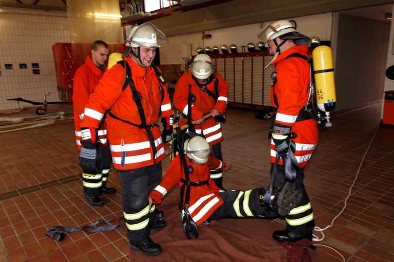 Um die körperliche Eignung und Fitness sicher zu stellen, wurde die Aktion Fit For Fire Fighting ins Leben gerufen, an der auch die Feuerwehr Schwieberdingen sehr aktiv teilnimmt. Für die Auffrischung der praktischen, so wie theoretischen Grundlagen für den Einsatzfall wurde der Workshop ausgerichtet. Über den gesamten Tag verteilt, wurden bei Stationsausbildungen Suchtechniken für Menschen, Rettungstechniken für verunfallte Atemschutzgeräteträger und Strahlrohrtechniken geübt. Die Aufgaben des Sicherheitstrupps, der bei Einsätzen mit Wohnungs- oder Gebäudebränden bereit steht, um bei einem Notfall schnell den verunglückten Trupp suchen und retten zu können, wurden besprochen. Für die Orientierungsübungen in ungewohnten Umgebungen wurde sogar das Klettergerüst der Kindertagesstätte im Herrenwiesenweg in Beschlag genommen. Die Trupps mussten unter angelegtem Atemschutz und "Null-Sicht" das Klettergerüst mit gespannten Seilen und Hindernissen durchlaufen. Durch die umfangreiche Vorbereitung des Atemschutzausbilders Bernd Bernhauer konnten alle wesentlichen Inhalte praktisch geübt werden.