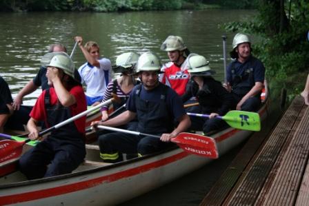 vom örtlichen Kanuclub wird auch eine separate Feuerwehrwertung vorgenommen. Als ob die Schwieberdinger in den letzten Wochen nicht genug Wassereinsätze hatten, war in diesem Jahr auch eine kleine Gruppe der Feuerwehr Schwieberdingen am Start. Für die 2 starken Paddlerrinnen und 4 Paddler hieß es, eine schnelle Runde auf der Enz hinzulegen. Dazu musste eine Distanz von ca. 1,2 km, geteilt in 600 m Flussabwärts und 600 m Flussaufwärts zurückgelegt werden. Getragen von der eigenen Motivation und der Unterstützung von mitgereisten Zuschauern und Gästen wurde nach 12 Minuten das Ziel erreicht.